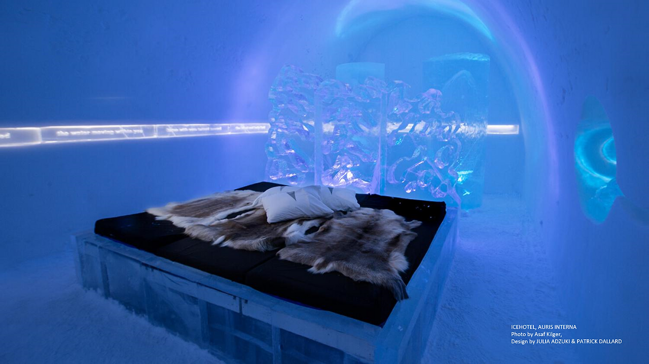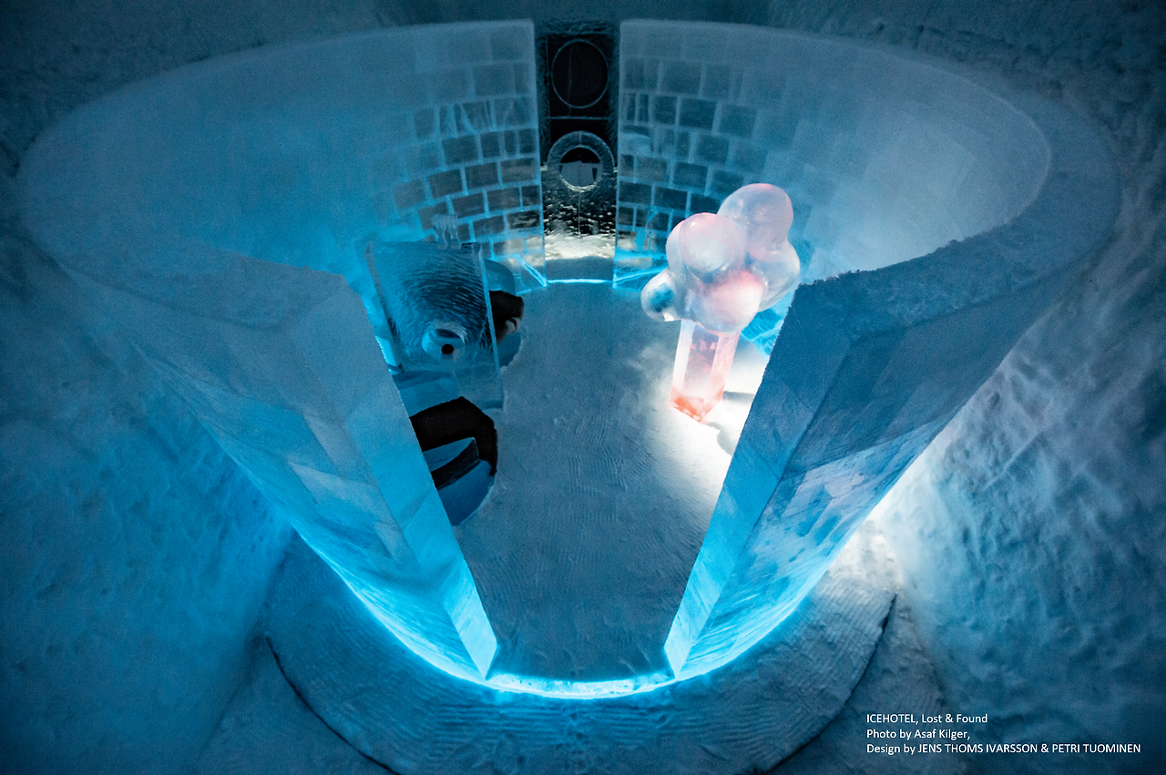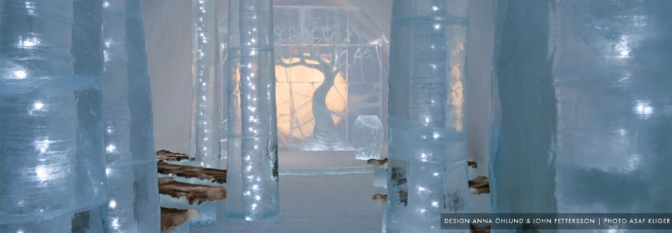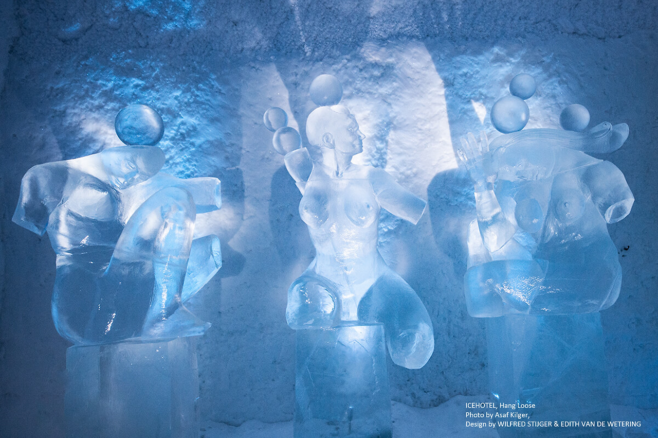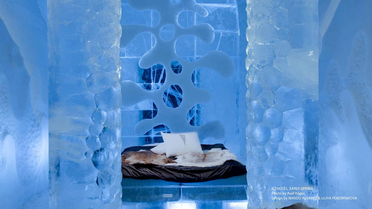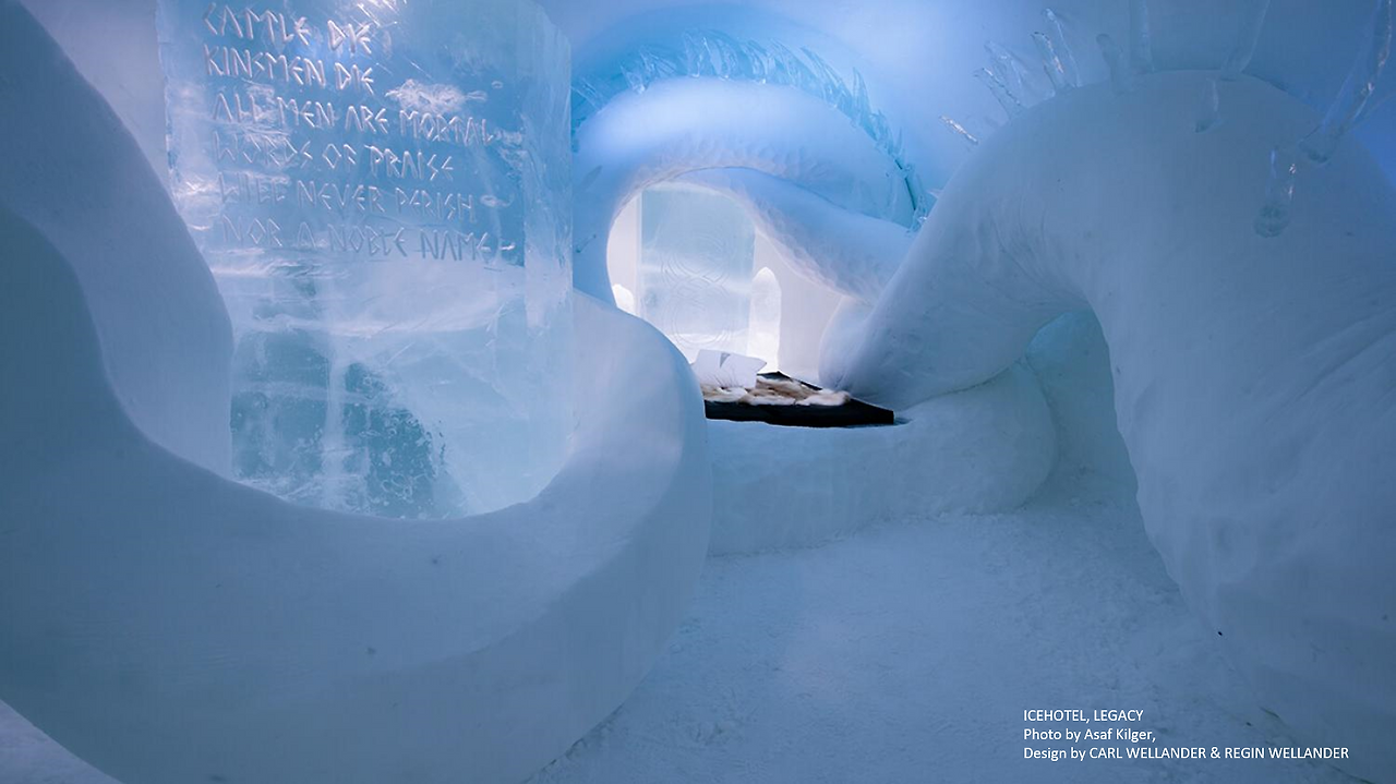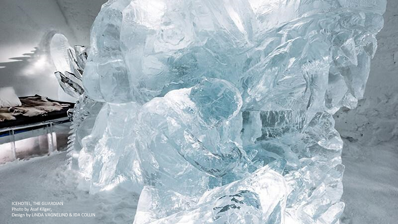 또한 ICEHOTEL의 소재인 얼음 또한 은유적으로나 물리적으로 시간의 흐름을 상기시키는 물질로 섬세하고 끊임없이 변함을 빗대어 표현한다고 한다.