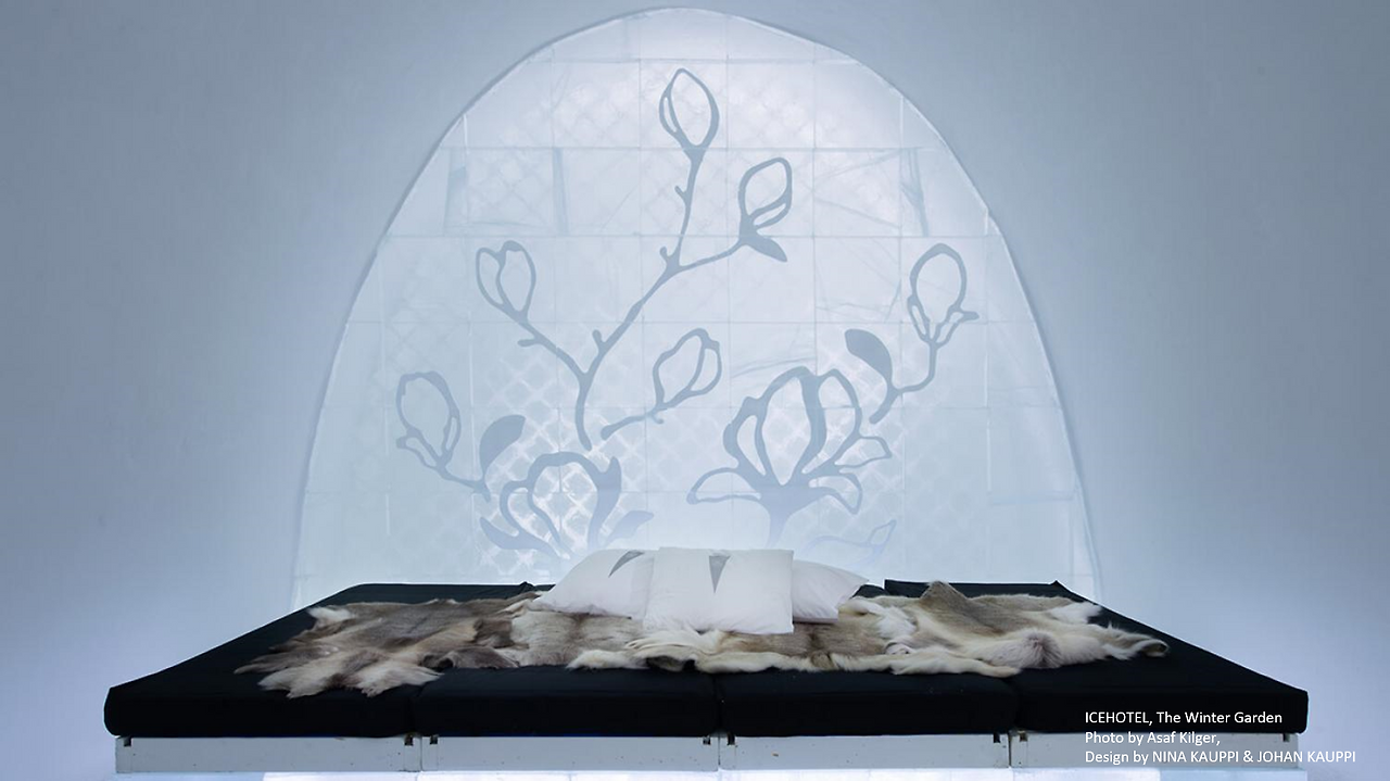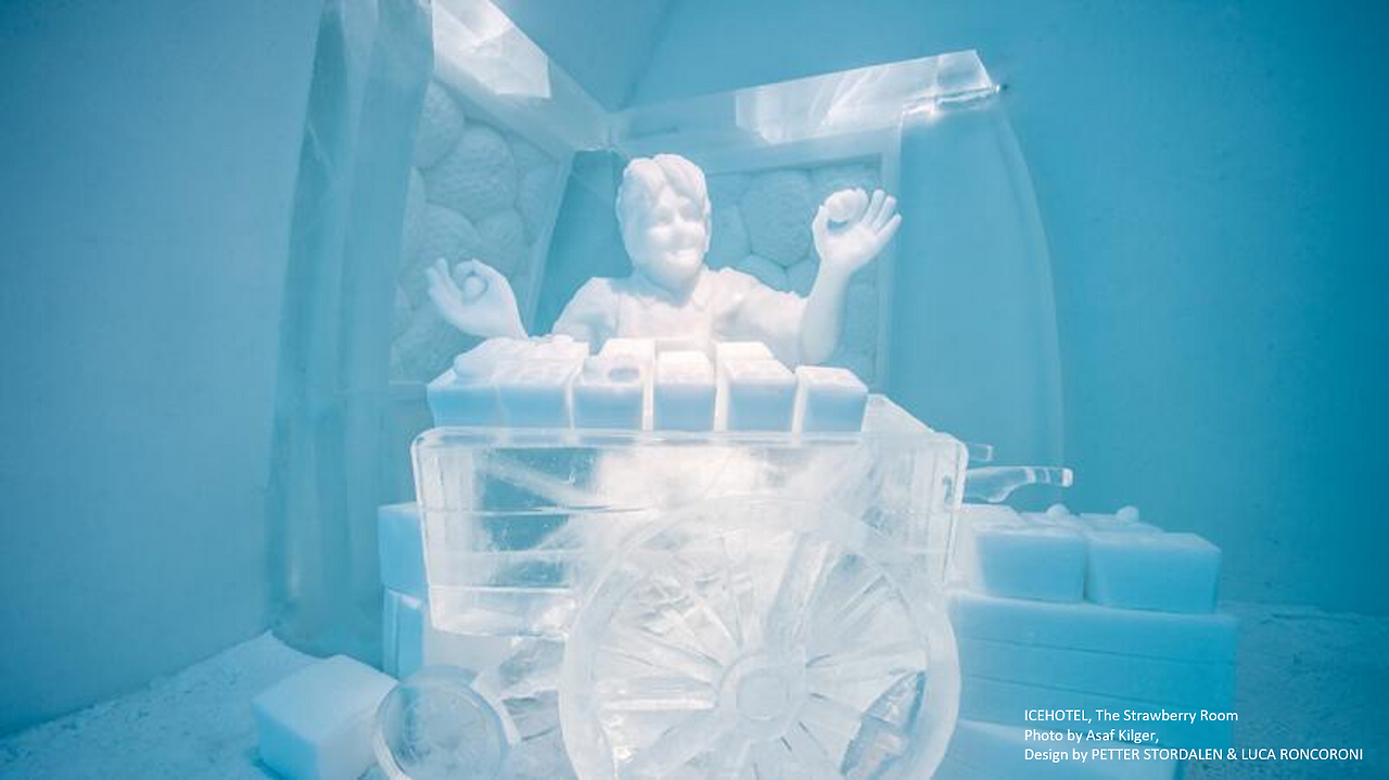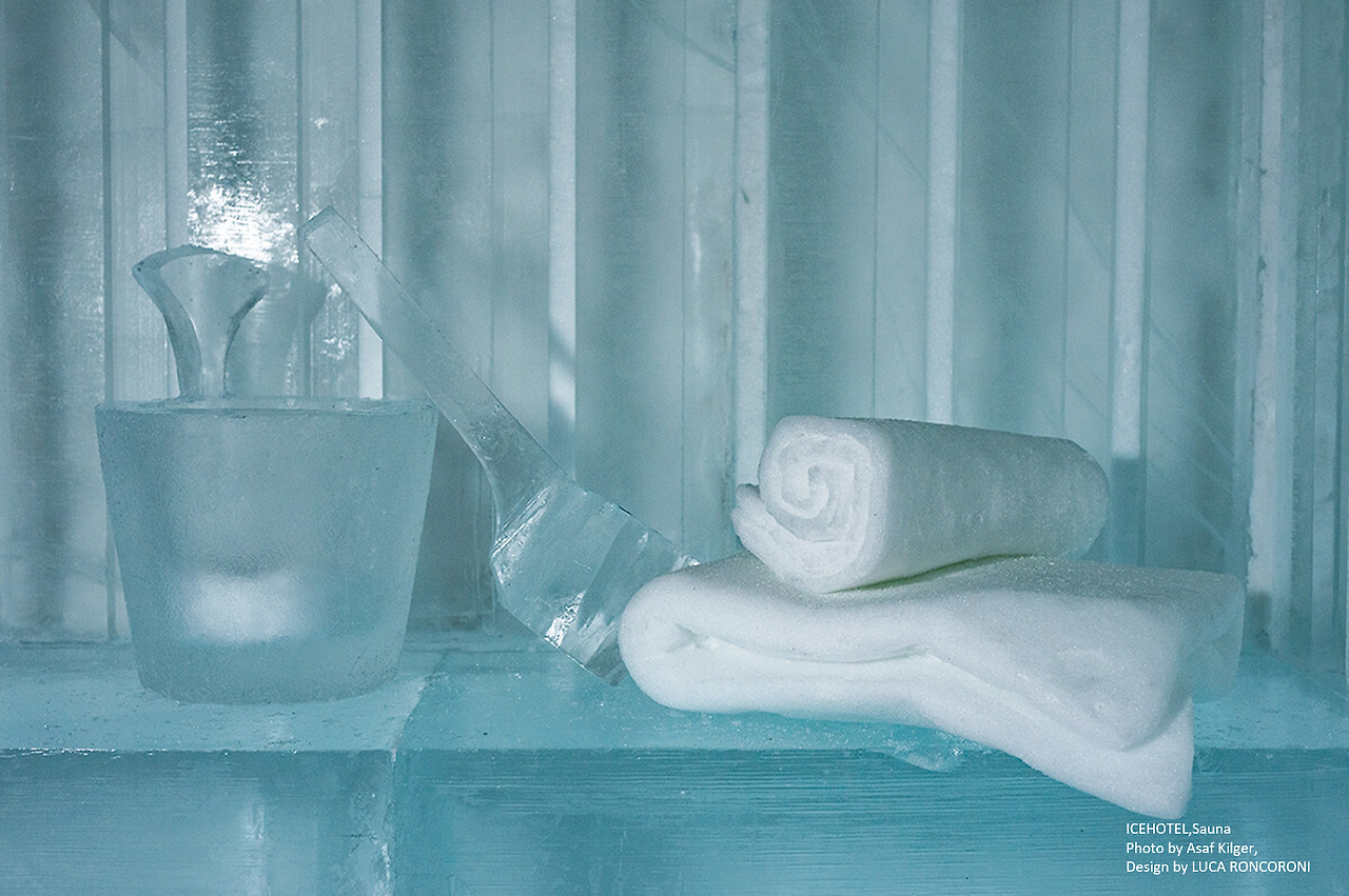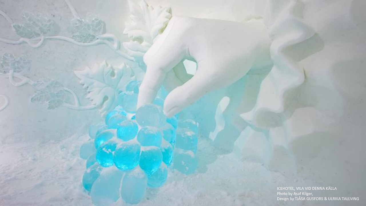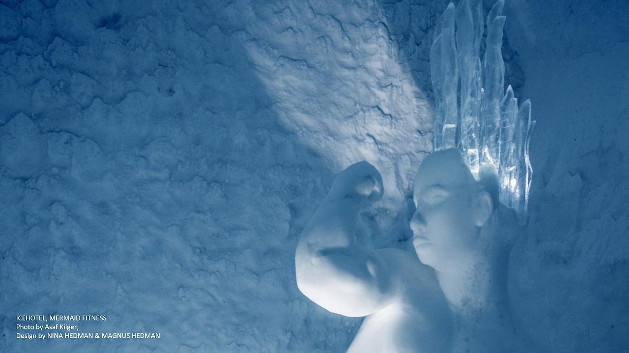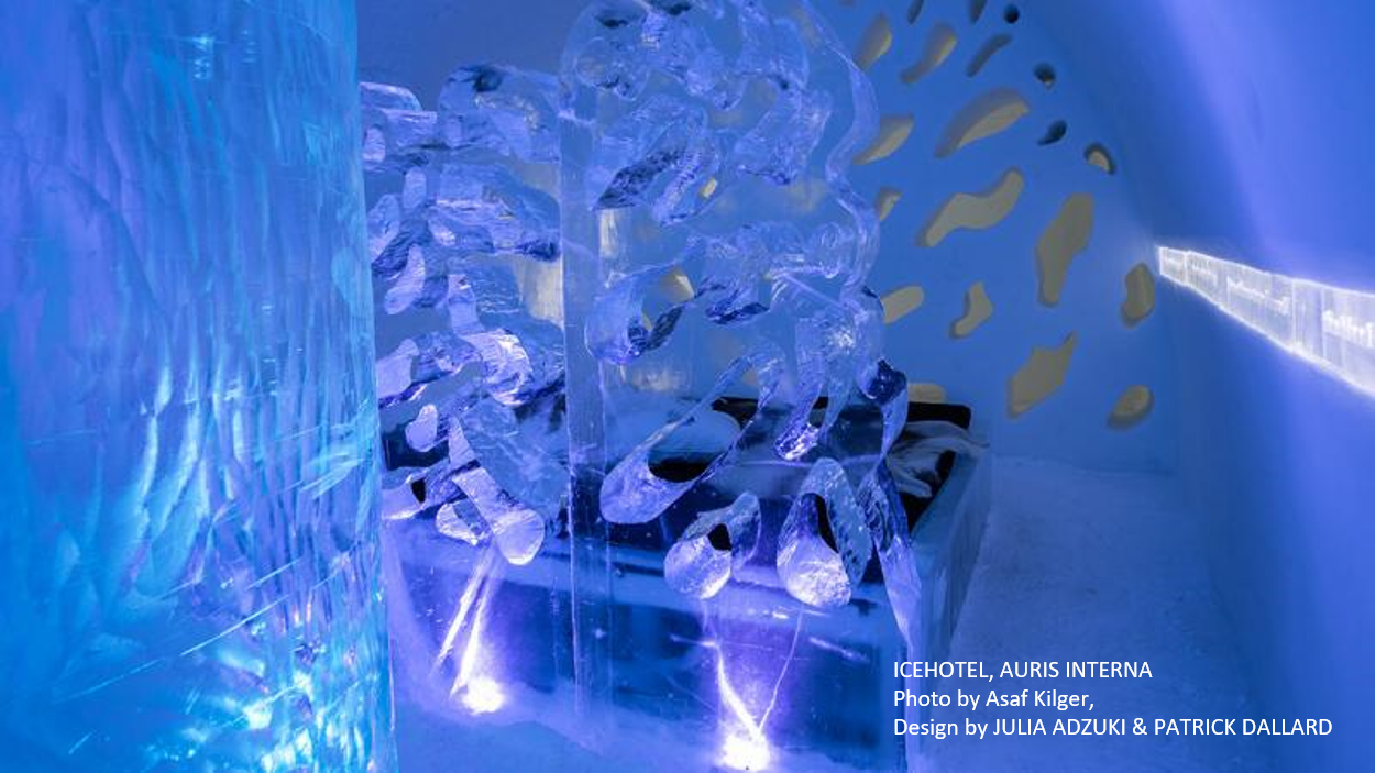 또한 ICEHOTEL의 소재인 얼음 또한 은유적으로나 물리적으로 시간의 흐름을 상기시키는 물질로 섬세하고 끊임없이 변함을 빗대어 표현한다고 한다.