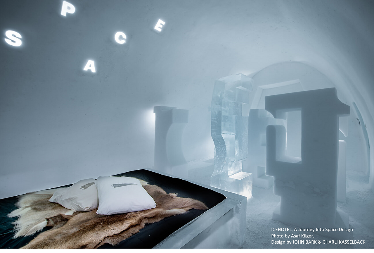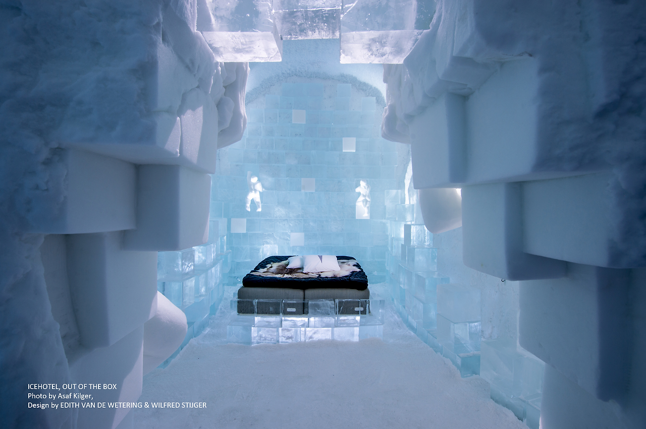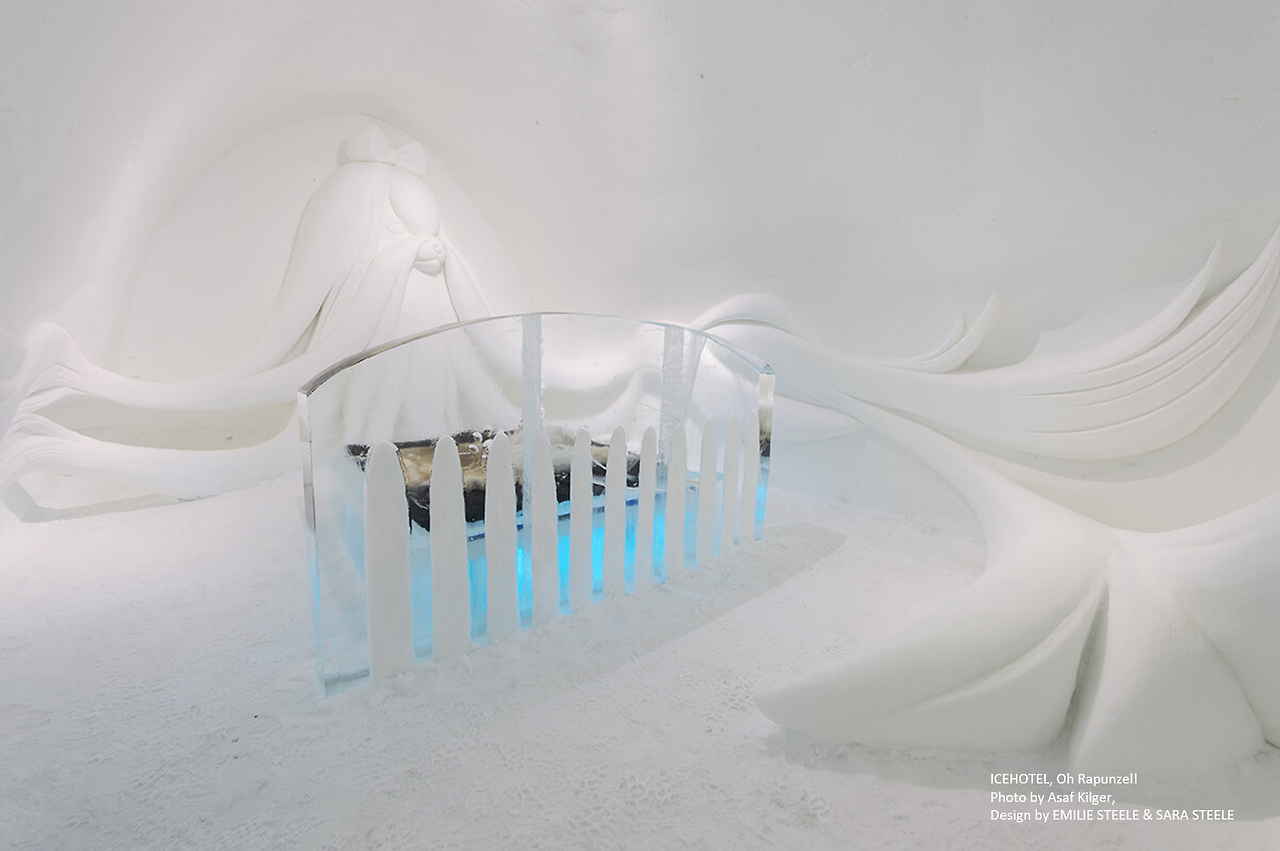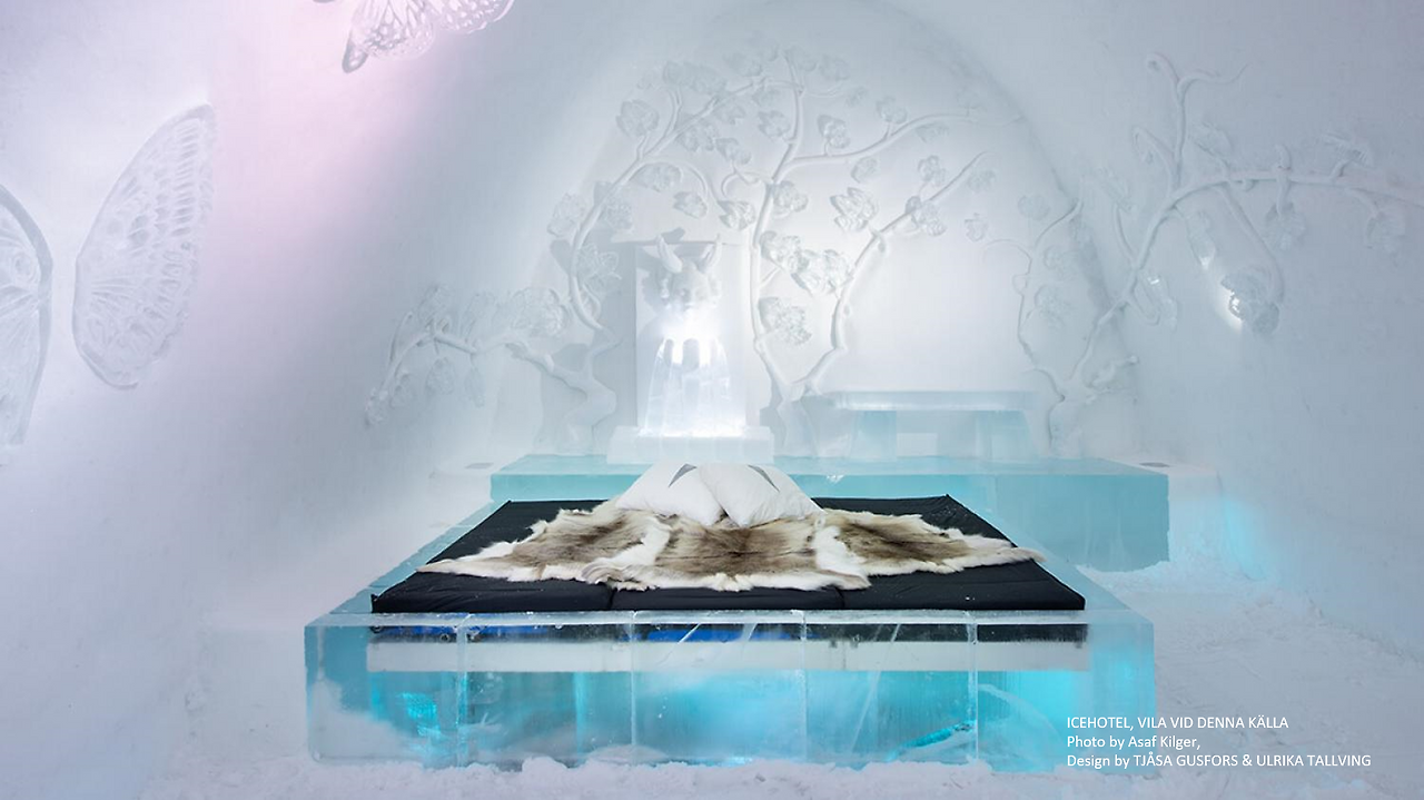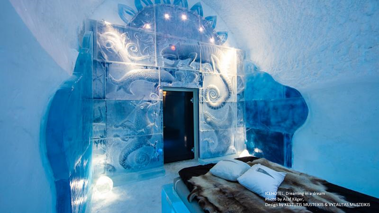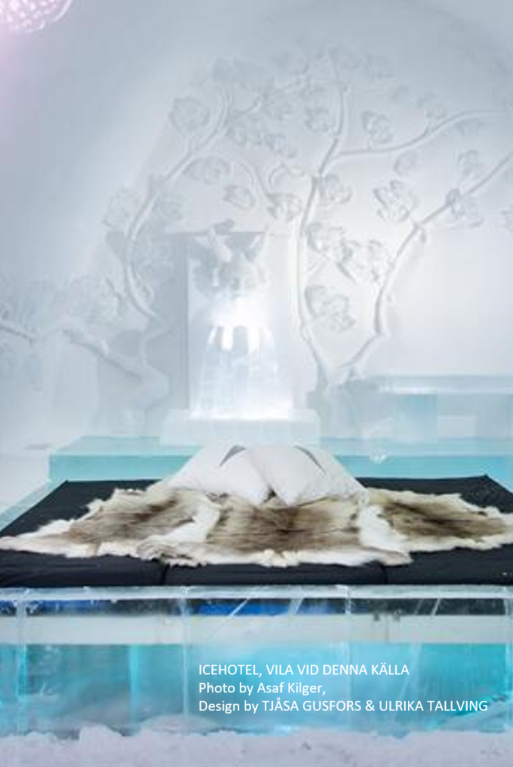 또한 ICEHOTEL의 소재인 얼음 또한 은유적으로나 물리적으로 시간의 흐름을 상기시키는 물질로 섬세하고 끊임없이 변함을 빗대어 표현한다고 한다.