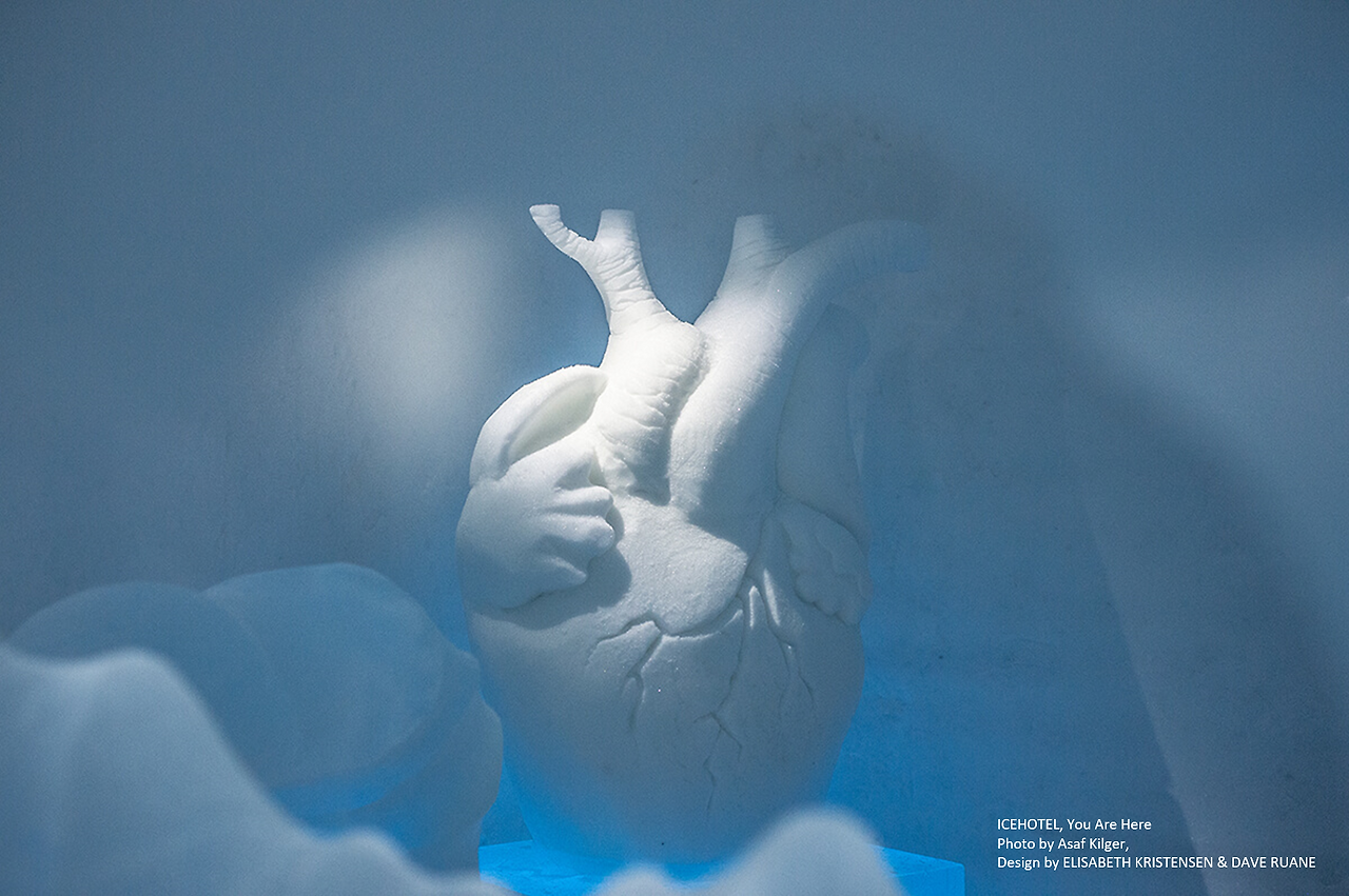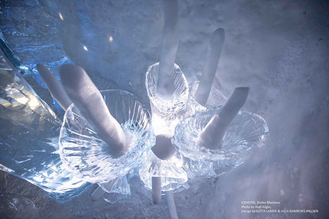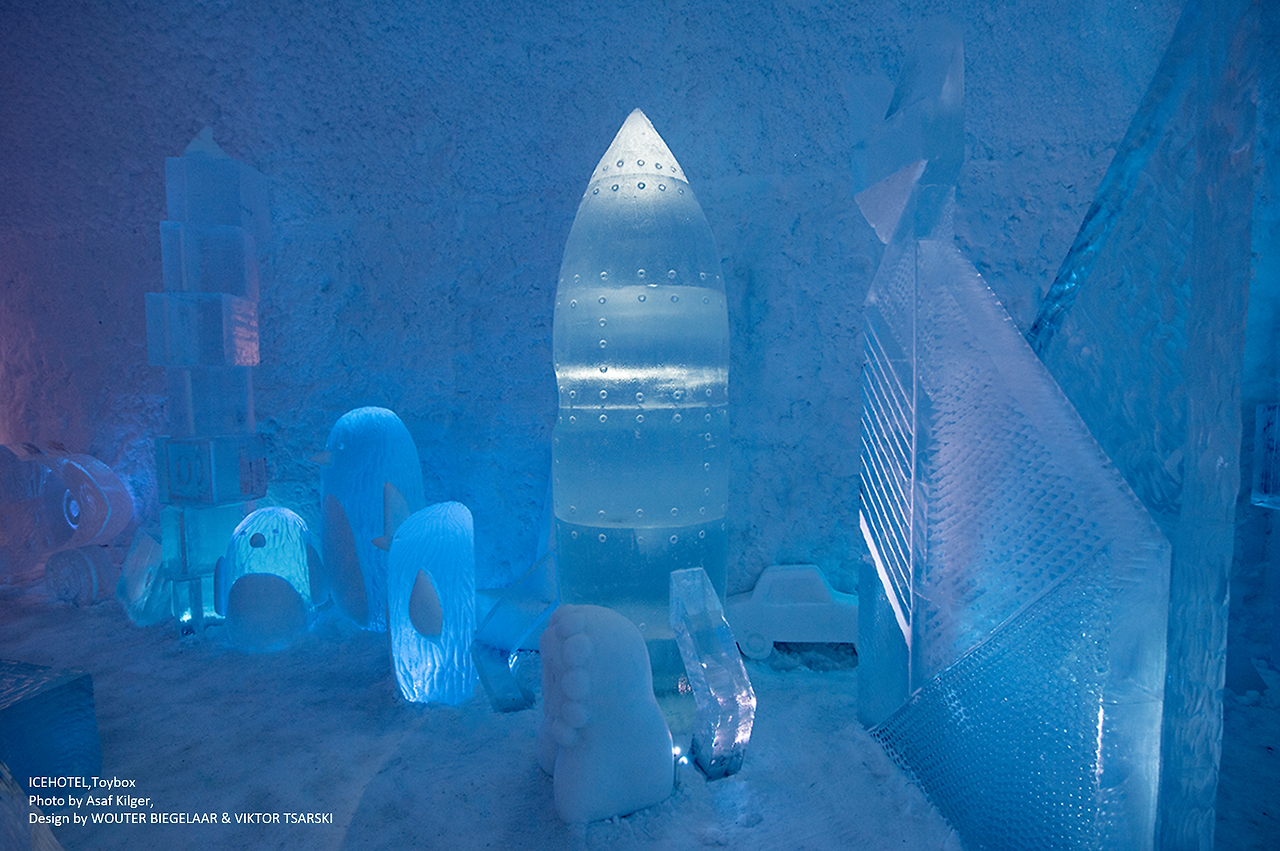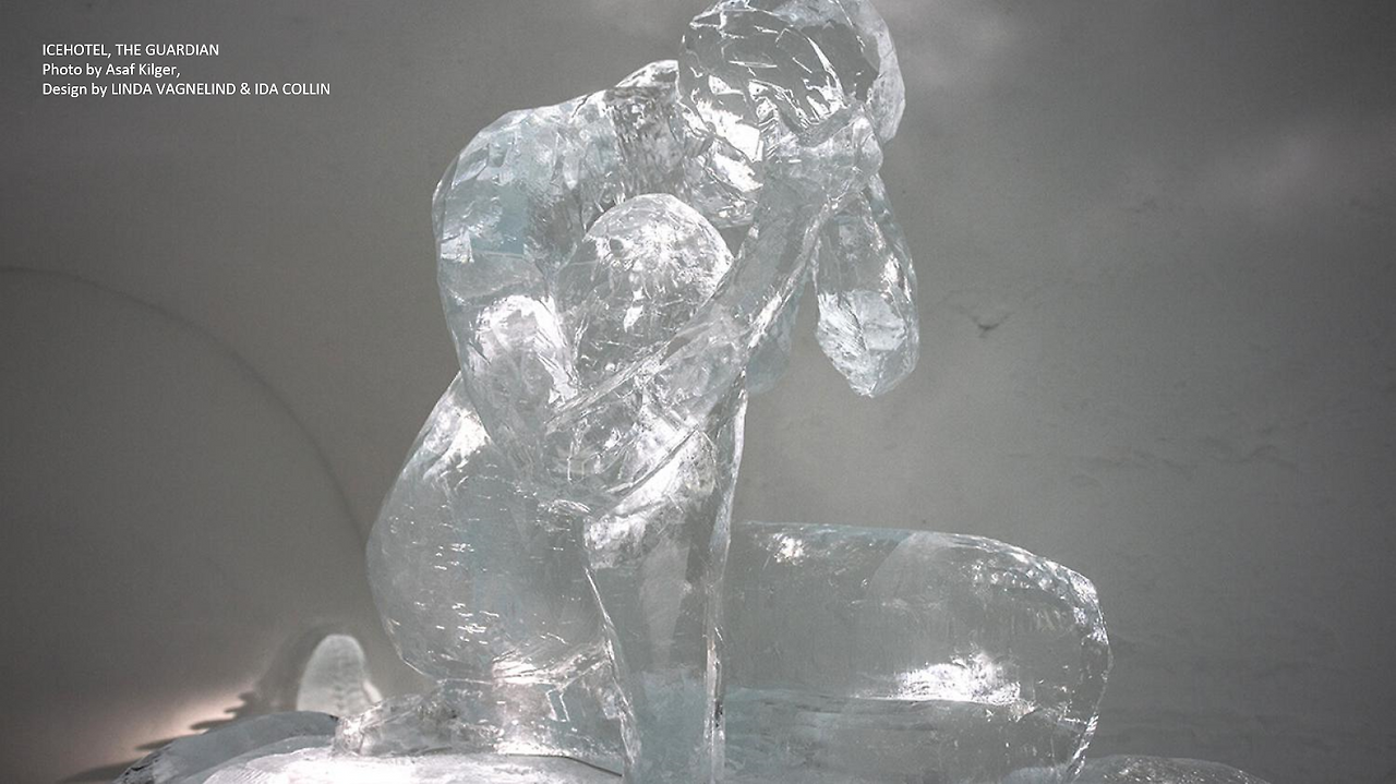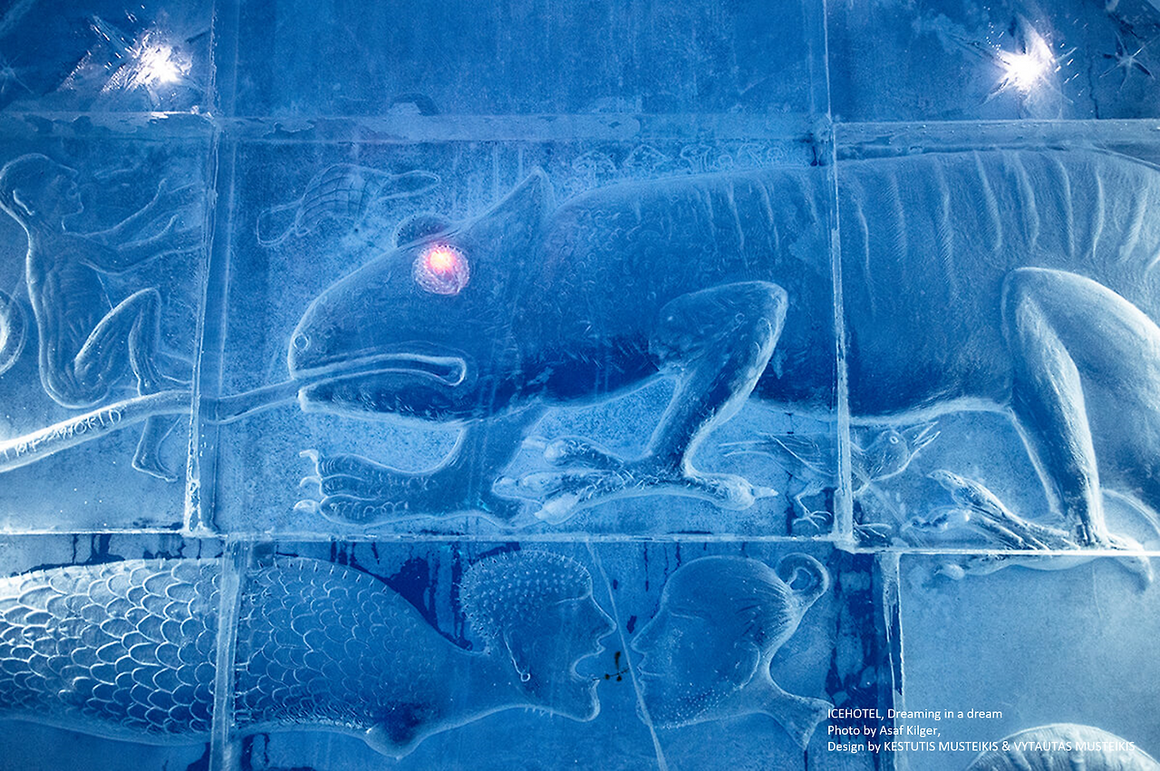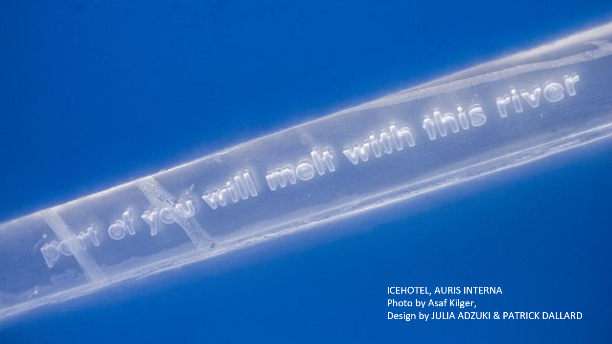 또한 ICEHOTEL의 소재인 얼음 또한 은유적으로나 물리적으로 시간의 흐름을 상기시키는 물질로 섬세하고 끊임없이 변함을 빗대어 표현한다고 한다.