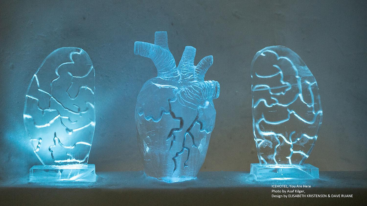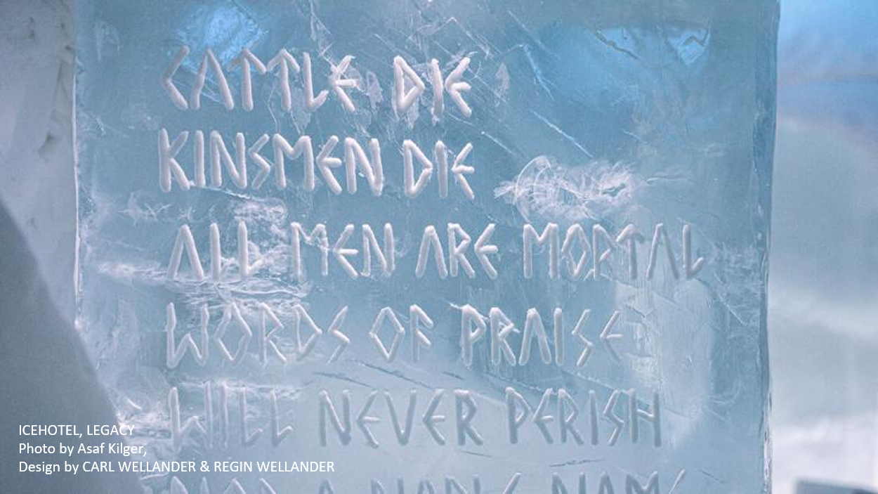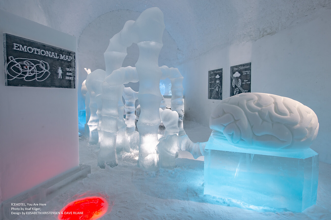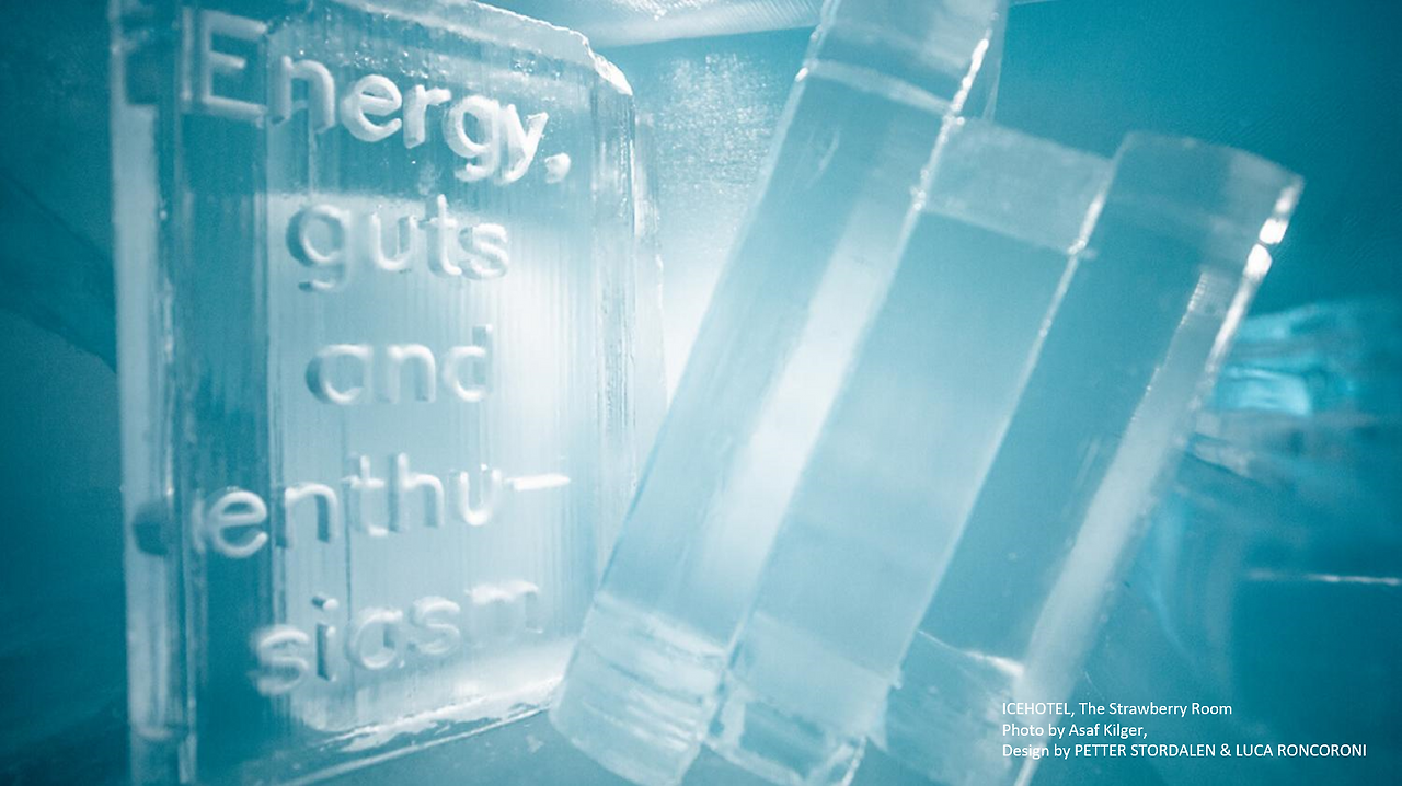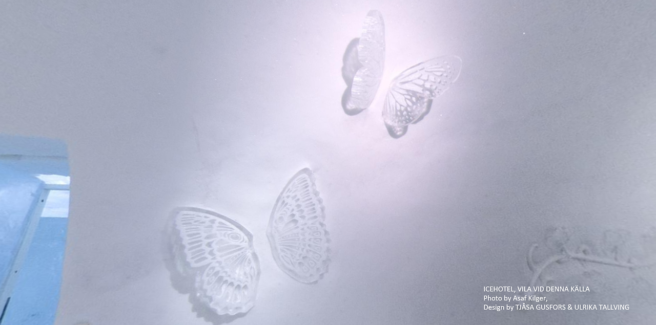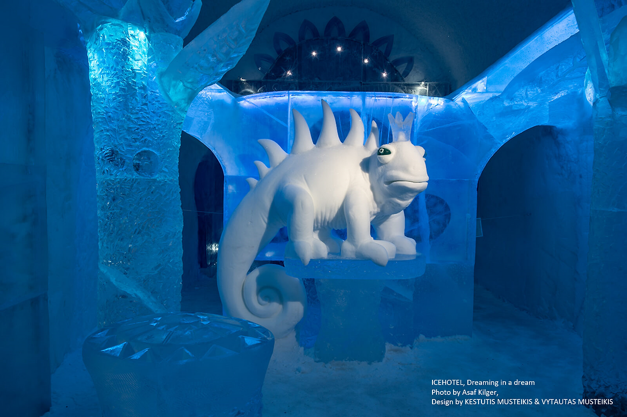 또한 ICEHOTEL의 소재인 얼음 또한 은유적으로나 물리적으로 시간의 흐름을 상기시키는 물질로 섬세하고 끊임없이 변함을 빗대어 표현한다고 한다.