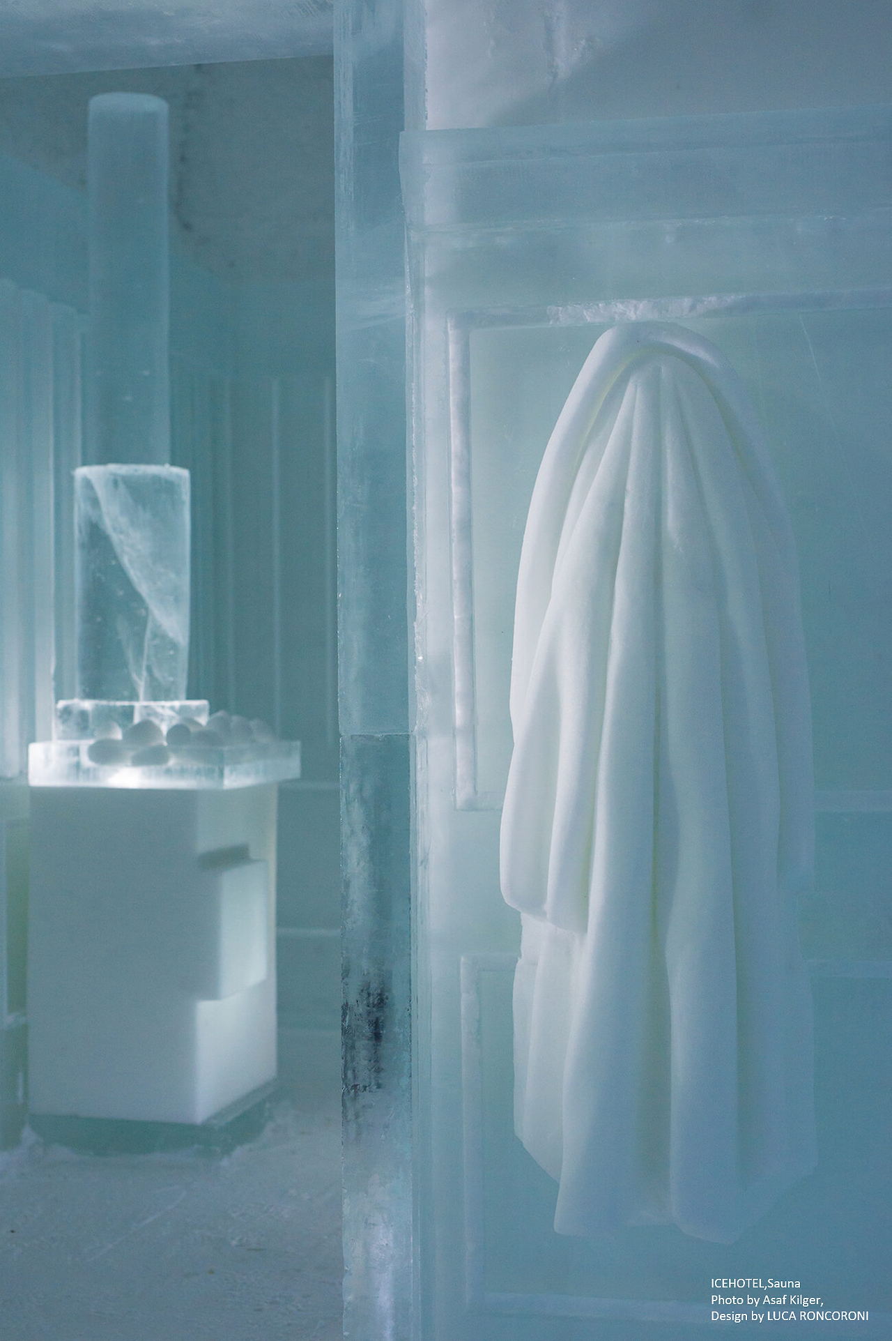 내가 제일 관심이 간 객실 중 하나. 얼음으로 만든 사우나 객실! 벽에 걸린 차가운 bathrobe, 타월, 오븐까지 모두 얼음과 눈으로 만들어진 작품. 네버랜드에서 상상놀이를 하듯 영하 5도의 객실에서 뜨끈한 사우나에 온 것 같은 상상놀이를 해야 할 것 같은 느낌이다.