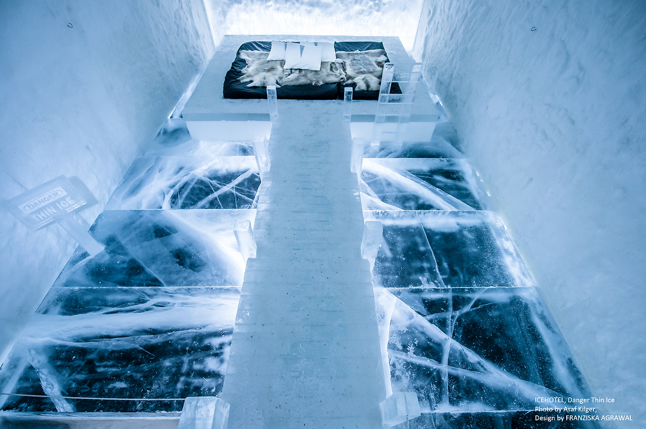 초현실적 공간의 일부로 느끼도록 디자인. 자연에 대한 경각심을 강조하기 위해 기존의 객실에서 활용했던 얼음조각들은 재활용하여 디자인