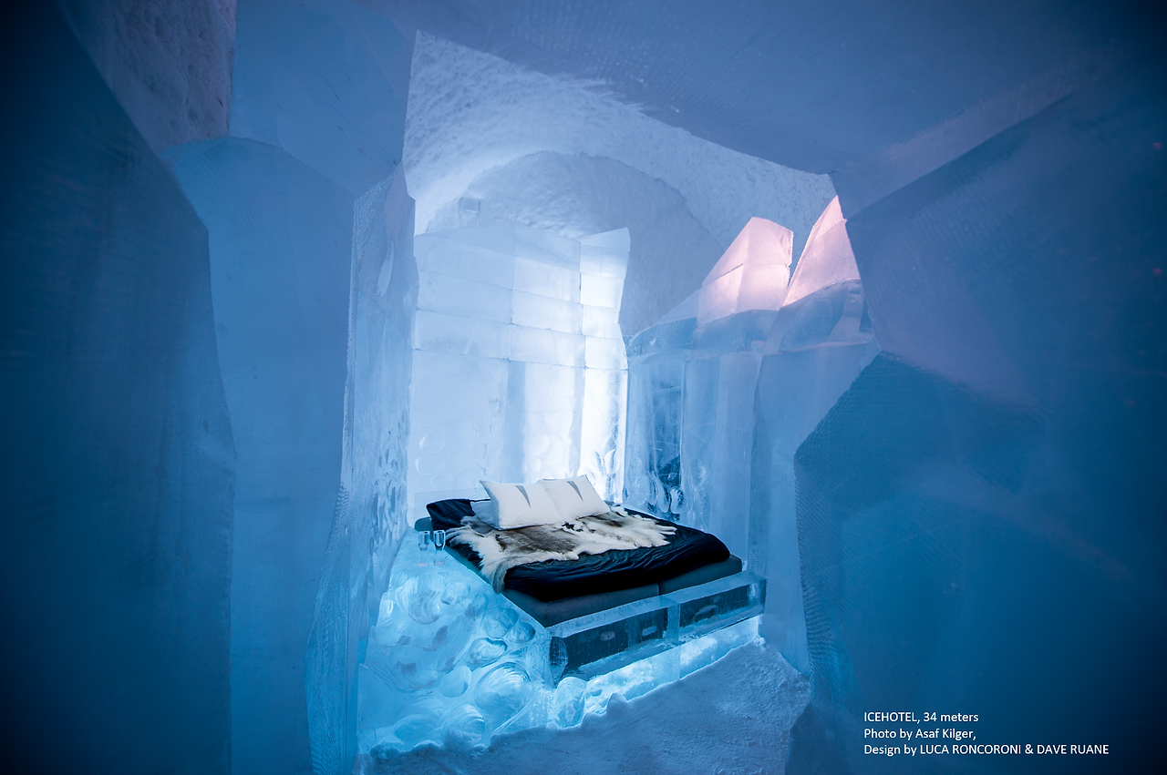 ICEHOTEL역사상 가장 두꺼운 얼음벽을 활용한 이 객실은 34미터의 얼음벽과 천장을 만드는데 32톤의 토른 강 얼음을 사용했다고 한다. 어마어마한 양의 얼음을 사용한 만큼 다른 객실보다 4~5도 정도 더 낮다고 한다. 일반 객실의 온도가 평균 섭씨 -5도이니 이 객실은 -10도 정도 되겠다.