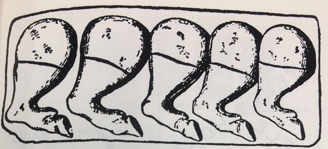 폼페이에서 발견된 로마식 표식으로 5개의 햄은 정육점을 상징 (Murphy, 1992)