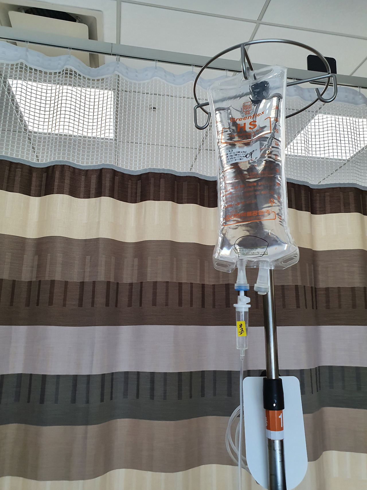 어색한 입원 수속 후 받은 수술복으로 갈아입고 수액까지 맞았지만 아직 수술이 실감이 나지 않았다.