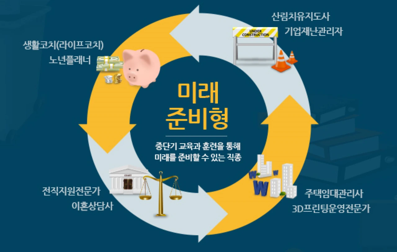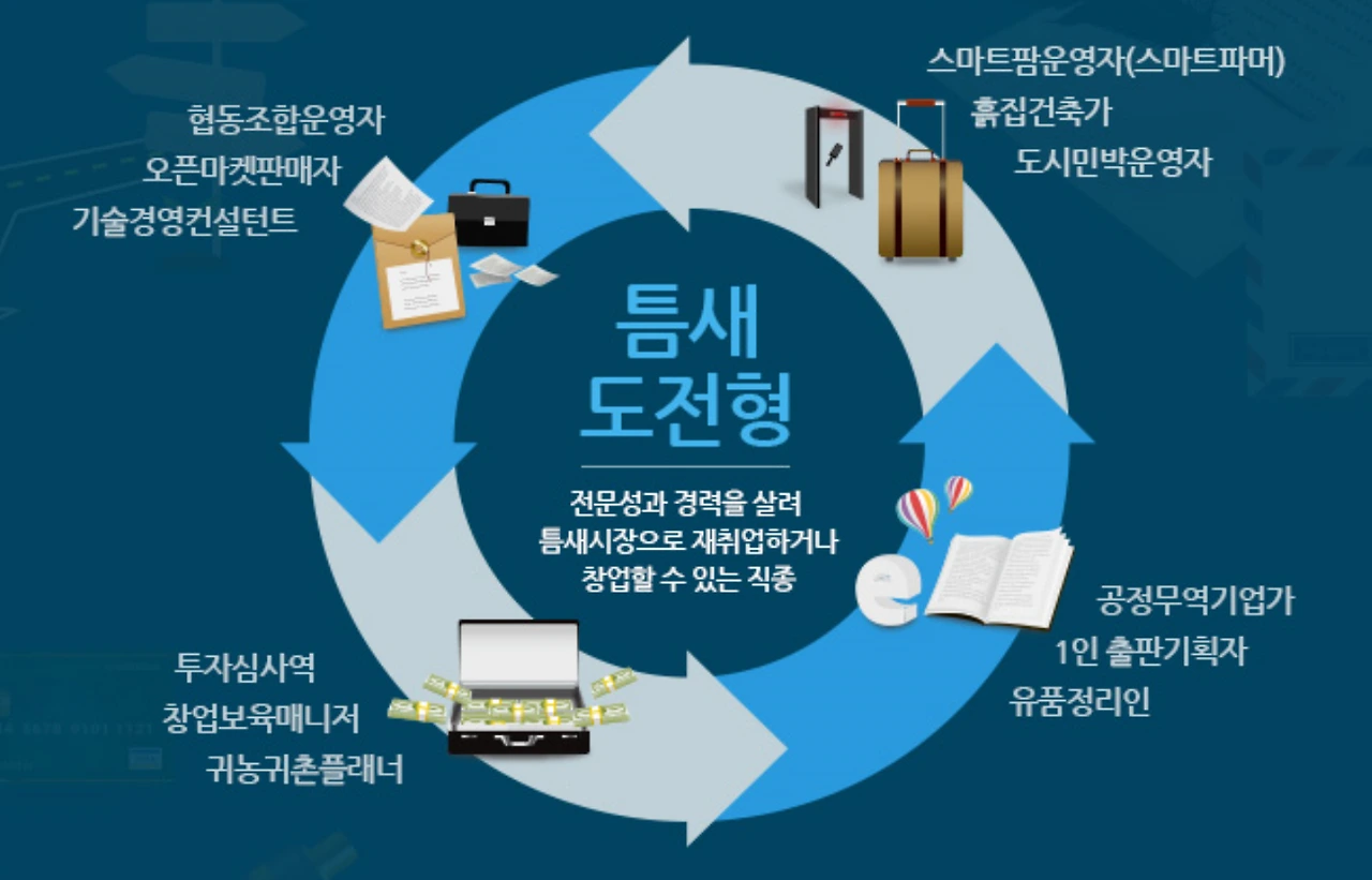 사회공헌 취미형, 틈새도전형, 미래준비형 중장년 일자리