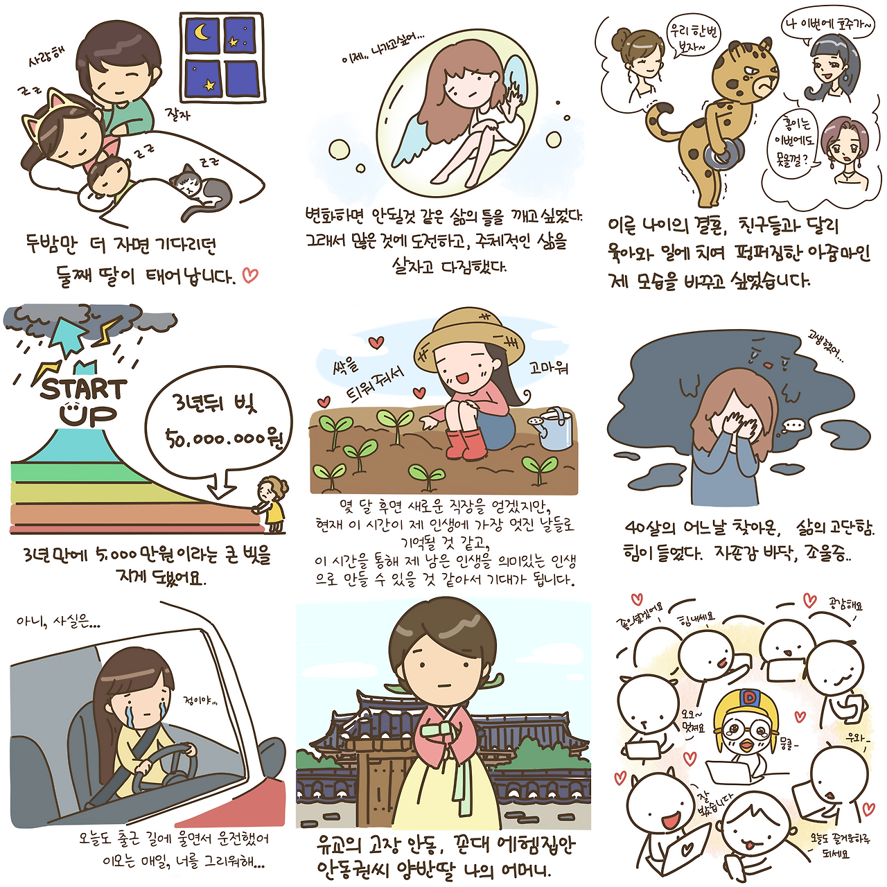 다른 사람들의 이야기 속 상황들을 적절하게 그려드리고 싶었어요.