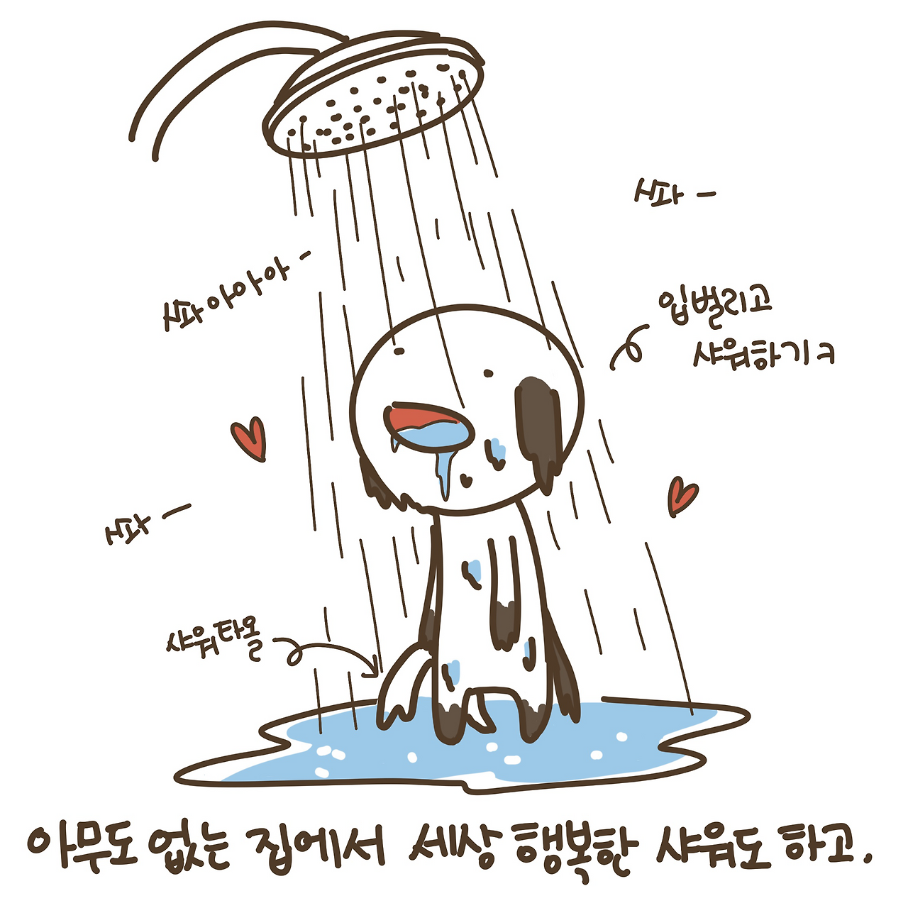 한가롭게 시간 가는줄 모르고 샤워하기