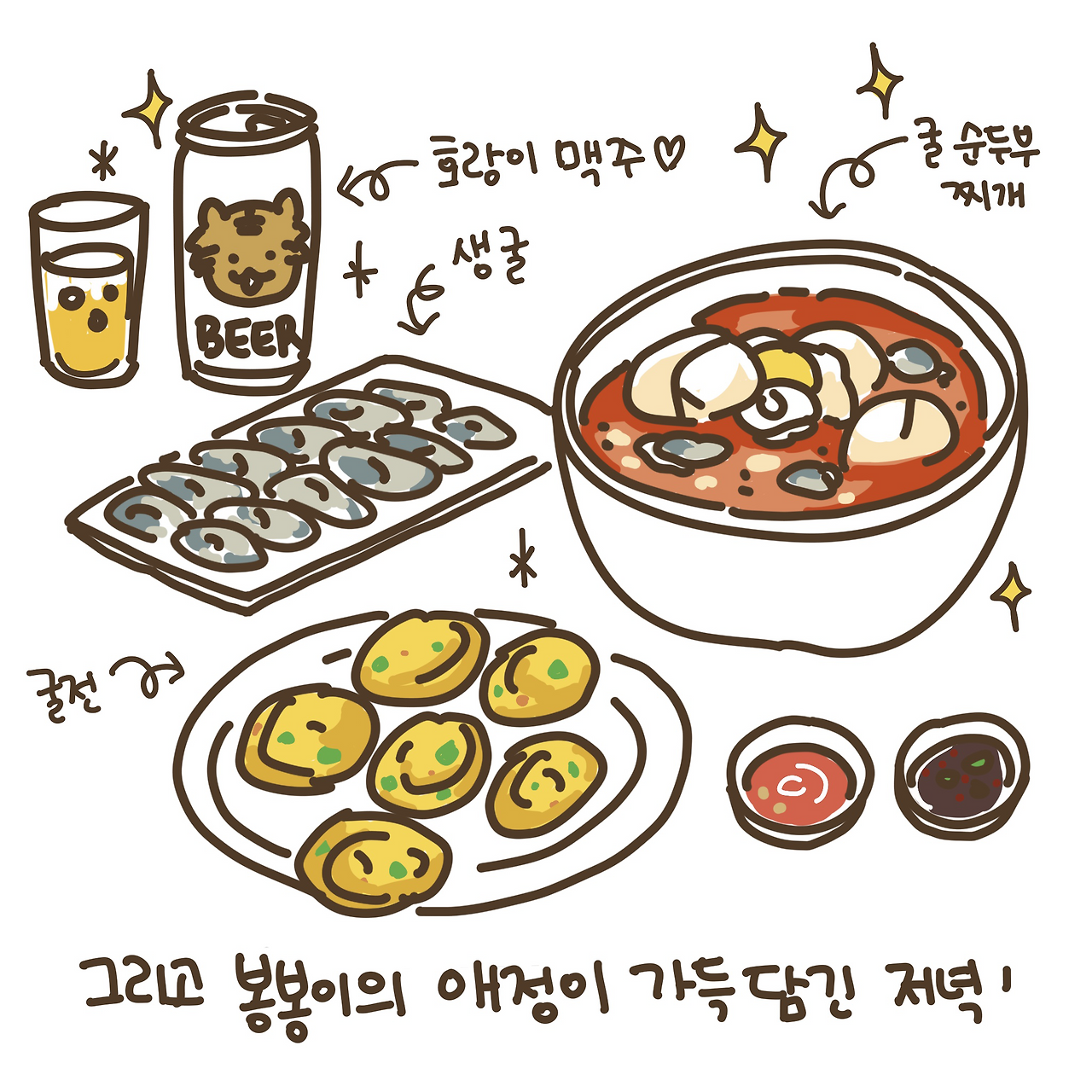 제 생각 났다며 호랑이 맥주도 사오고요