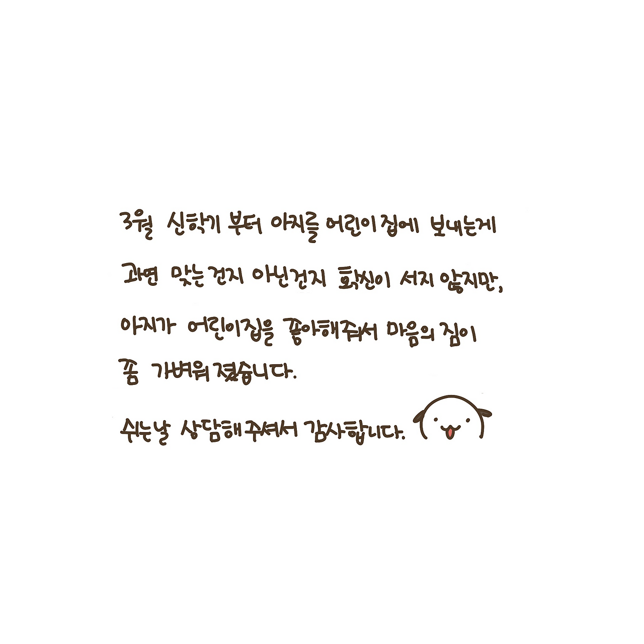 다른 가정어린이집에 상담가면 이런걸 물어봐야겠구나! 라고 대충 정리 해볼 수 있었습니다