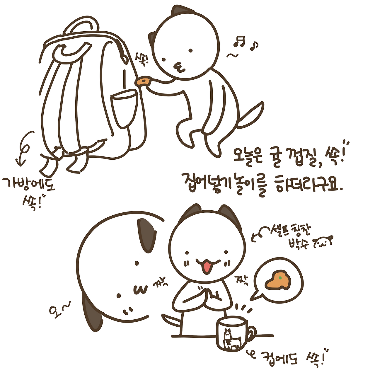 그냥 그렇게 흩뿌리고 주어 담는 놀이를 했답니다.