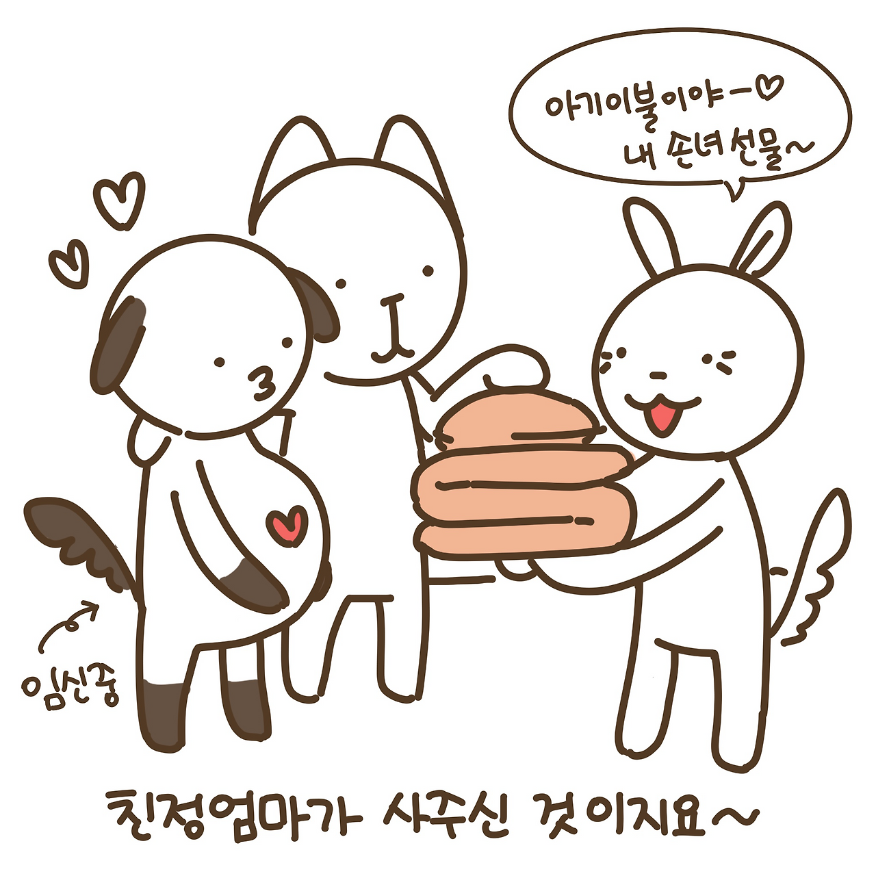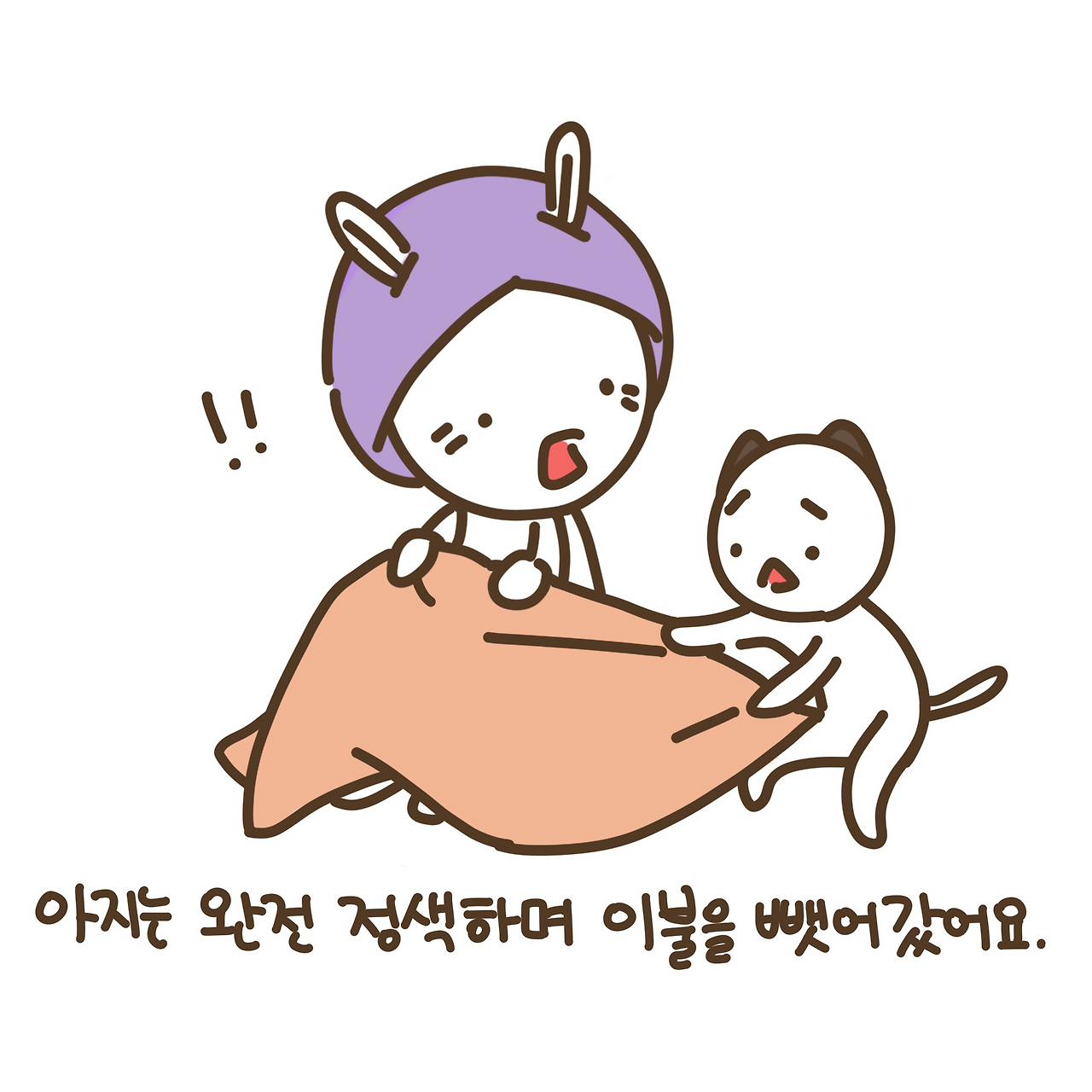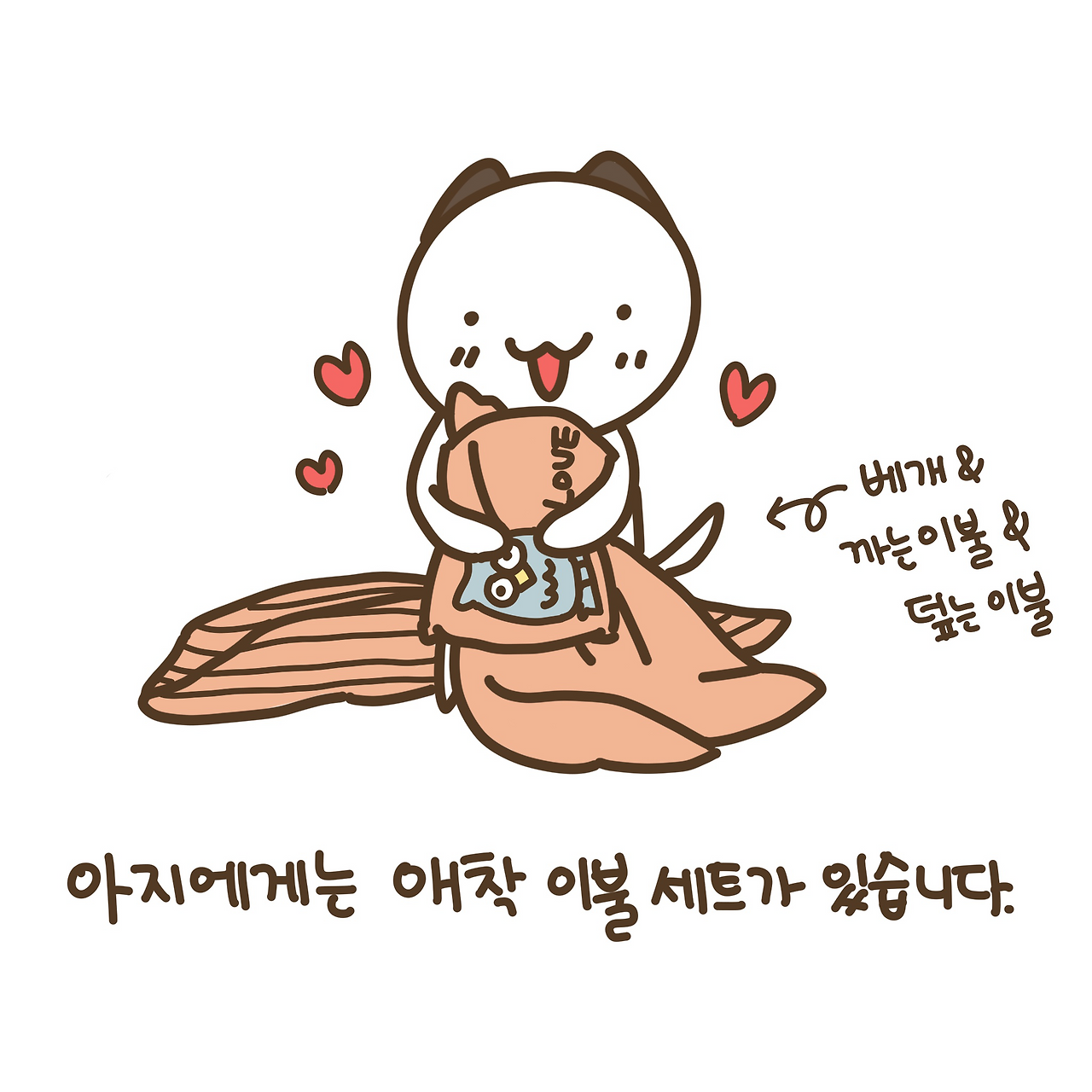 친정엄마가 사주신 이불세트는 아지가 정말 좋아하는 것들 이에요.