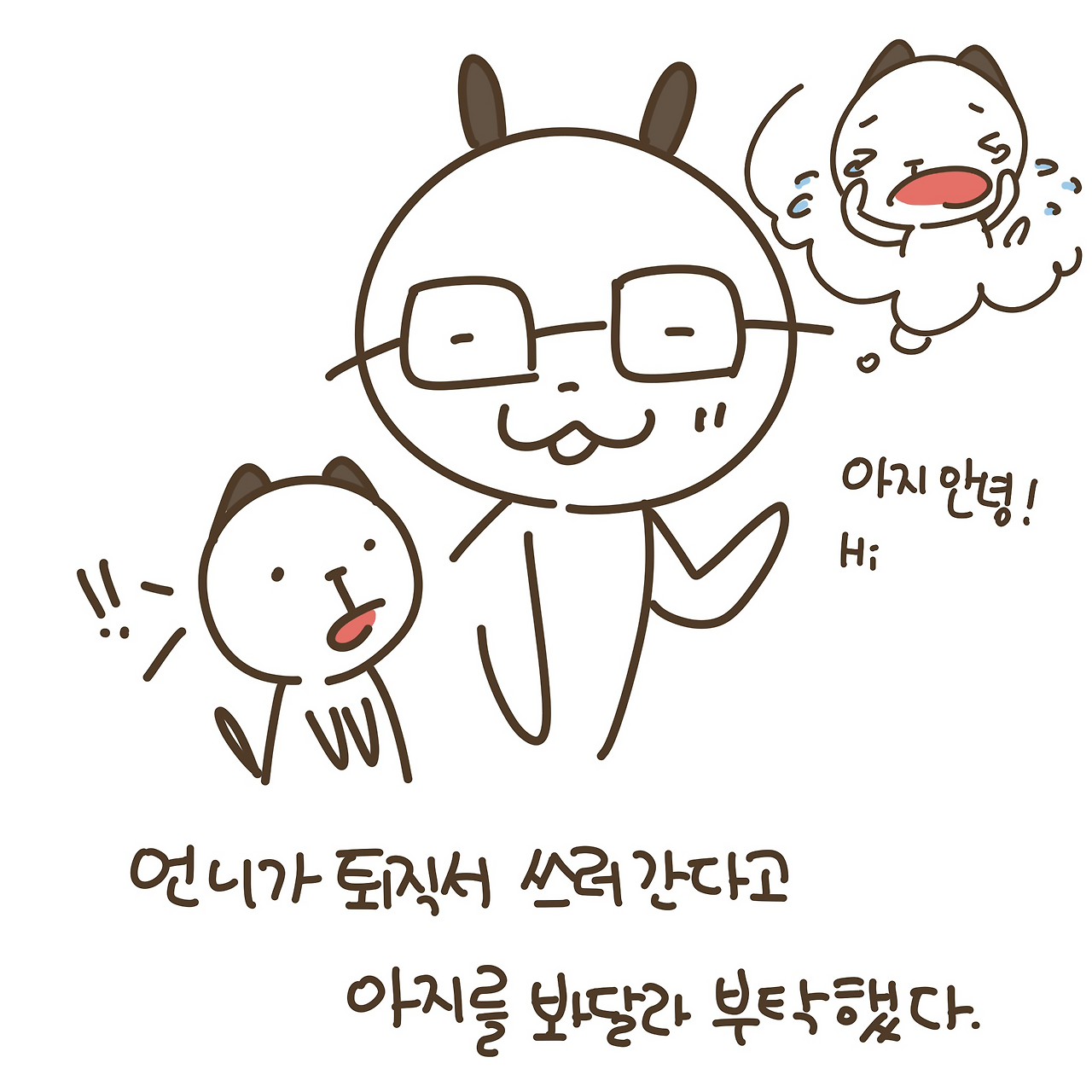 아지를 동생에게 맡겨두고 회사에 다녀왔습니다.