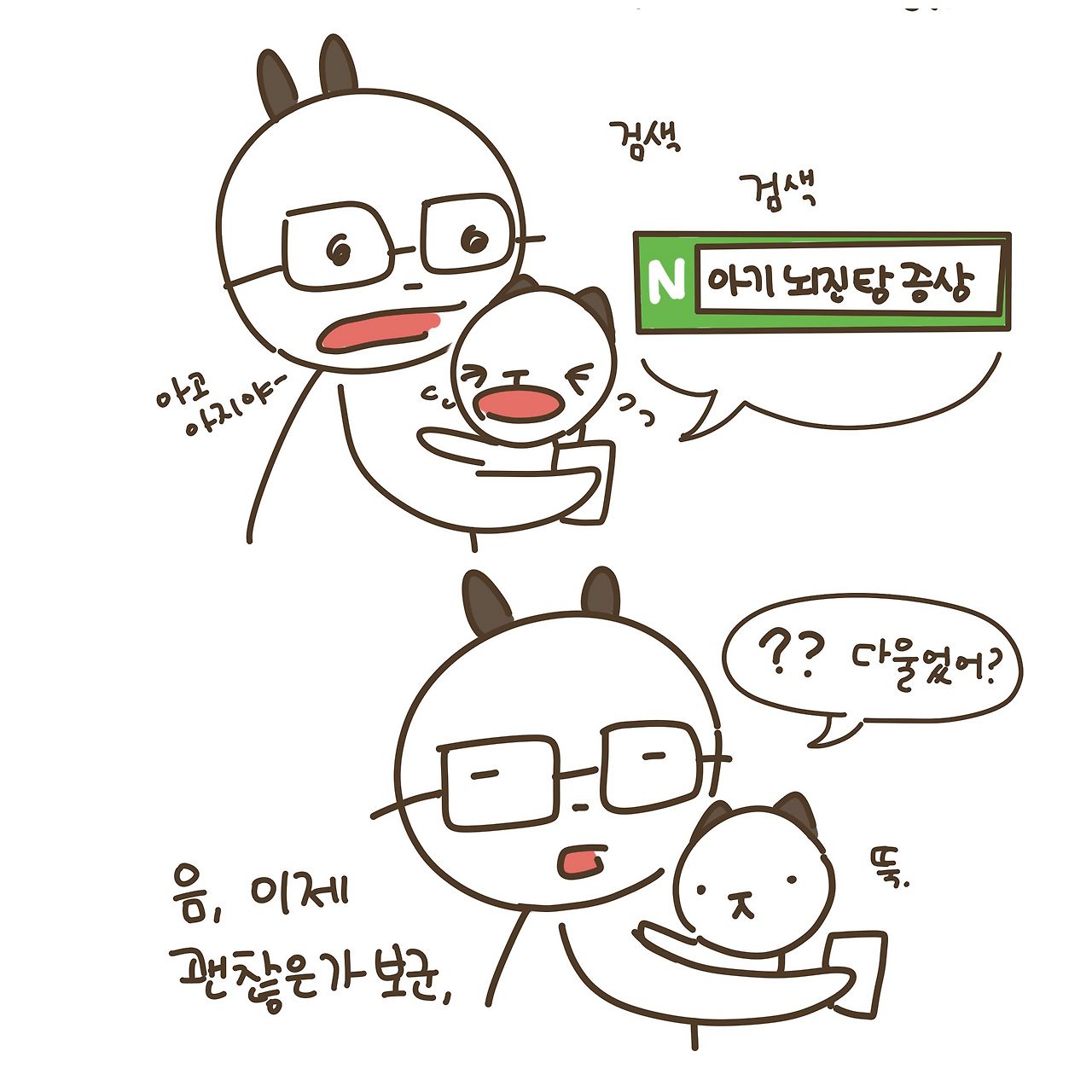 이 이야기를 듣자 마자 아기뇌진탕 증상을 검색했습니다.