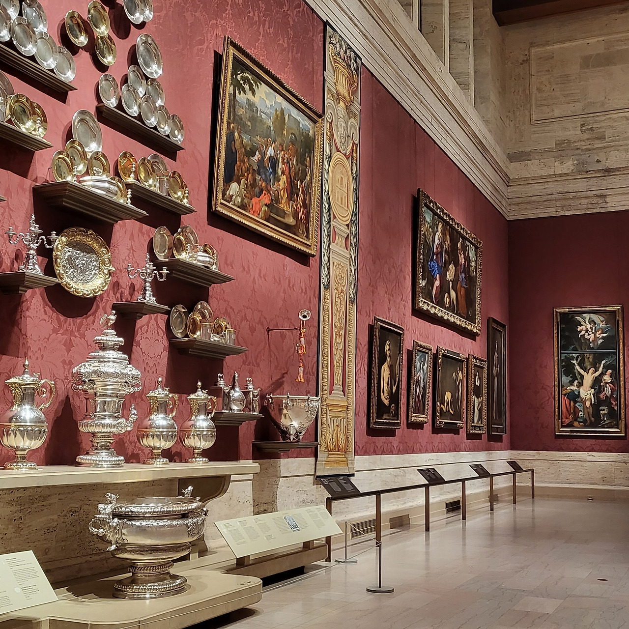 § 미술관 내부 천장의 모습과 유럽 전시실에서 볼 수 있는 스테인드 글라스와 조각상. 유럽의 미술품은 아무래도 기독교 관련 작품들이 많은데 비잔틴의 초기 기독교 미술작품과 이집트의 콥트교 유물 같은 한국에서는 쉽게 접하기 어려운 작품들도 만날 수 있다.