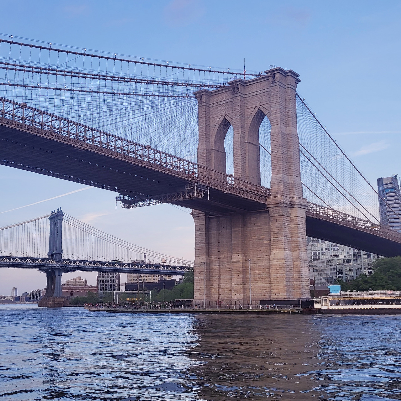 § 간신히 자리에 앉자마자 배가 출발을 했다. 7시가 출항 시간인데 해가 8시에 지기 때문에 한 시간 가까이 허드슨 강을 따라 내려가다 해 질 무렵에 맞추어 자유의 여신상을 둘러보는 코스로 뉴욕 유람선 중 가장 인기 있는 상품이라고 한다. 배에서 바라보는 브루클린 다리는 평화롭다. 하지만 저 다리 위는 전혀 그렇지 않을 것임을 나는 안다.