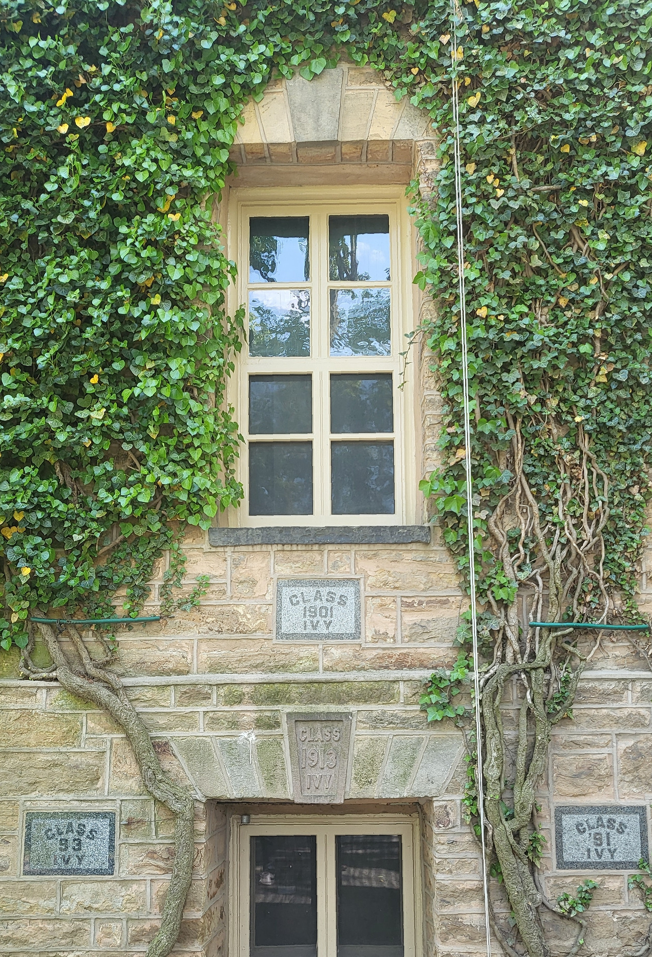 § 담쟁이덩굴이 아름다운 프린스턴 대학 본관과 인문관. 담쟁이는 원래 졸업생들이 기증했던 것으로 나무 옆에는 기증 연도가 새겨져 있다. 지인 중에 문화재 복원을 하는 분이 있는데 그는 담쟁이야말로 건축문화재의 적이라며 담쟁이를 극혐 했었다. 아닌 게 아니라 프린스턴 대학도 담쟁이를 심을 곳도 남아있지 않은 데다 건물 안전상의 문제도 있어 더 이상 담쟁이를 심지 않는다고 한다.