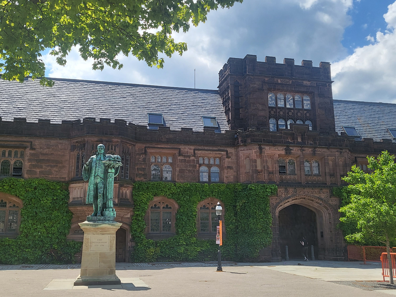 시끌벅적하고 사람이 바글거리는 뉴욕을 벗어나 프린스턴에 도착하니 숨통이 트이는 기분이다. 어디로 눈을 돌리든 초록색 나무와 고풍스러운 대학 건물이 평화롭게 자리하고 있다. 1746년에 설립된 대학이니 만큼 캠퍼스 전체가 미국이 아닌 유럽 한복판 같은 풍경인데, 설명을 들으니 본관이나 일부 건물을 제외하면 식민지 시대에 지어진 것이 아니라 나중에 차례로 지어진 건물이라고 한다. 다만 통일성을 유지하기 위해 비슷한 분위기로 만든 것이라는데 덕분에 프린스턴만의 고색창연한 느낌이 훼손되지 않은 것 같다. 공교롭게도 우리가 방문한 날이 홈 커밍 데이 하루 전이라 캠퍼스 곳곳에 설치된 행사용 천막이 시야를 가려 캠퍼스 전체를 조망할 수는 없었다. 원래도 홈커밍 데이 때는 캠퍼스가 복작복작하지만 올해는 코로나로 중단되었던 행사가 재개되어서 더욱 참가 신청자가 많다고 한다. 홈커밍 데이의 하이라이트는 졸업 연도 순으로 차례로 행렬을 하는 퍼레이드라는데, 처음에는 백인 남자들만 있다가 70년대쯤에 이르러 여자가 등장하고 그 후로 흑인과 아시안 등 유색인종이 차례로 등장해 이 퍼레이드만 봐도 미국 역사를 한눈에 볼 수 있다고 한다. 하루 전에 도착해 퍼레이드를 보지 못한 것은 아쉽지만, 행사 당일에 왔다면 사람이 많아 그 무엇도 제대로 보지 못했을 것이 뻔하기에 한산하게 캠퍼스 구경을 한 것으로 만족하기로 했다.