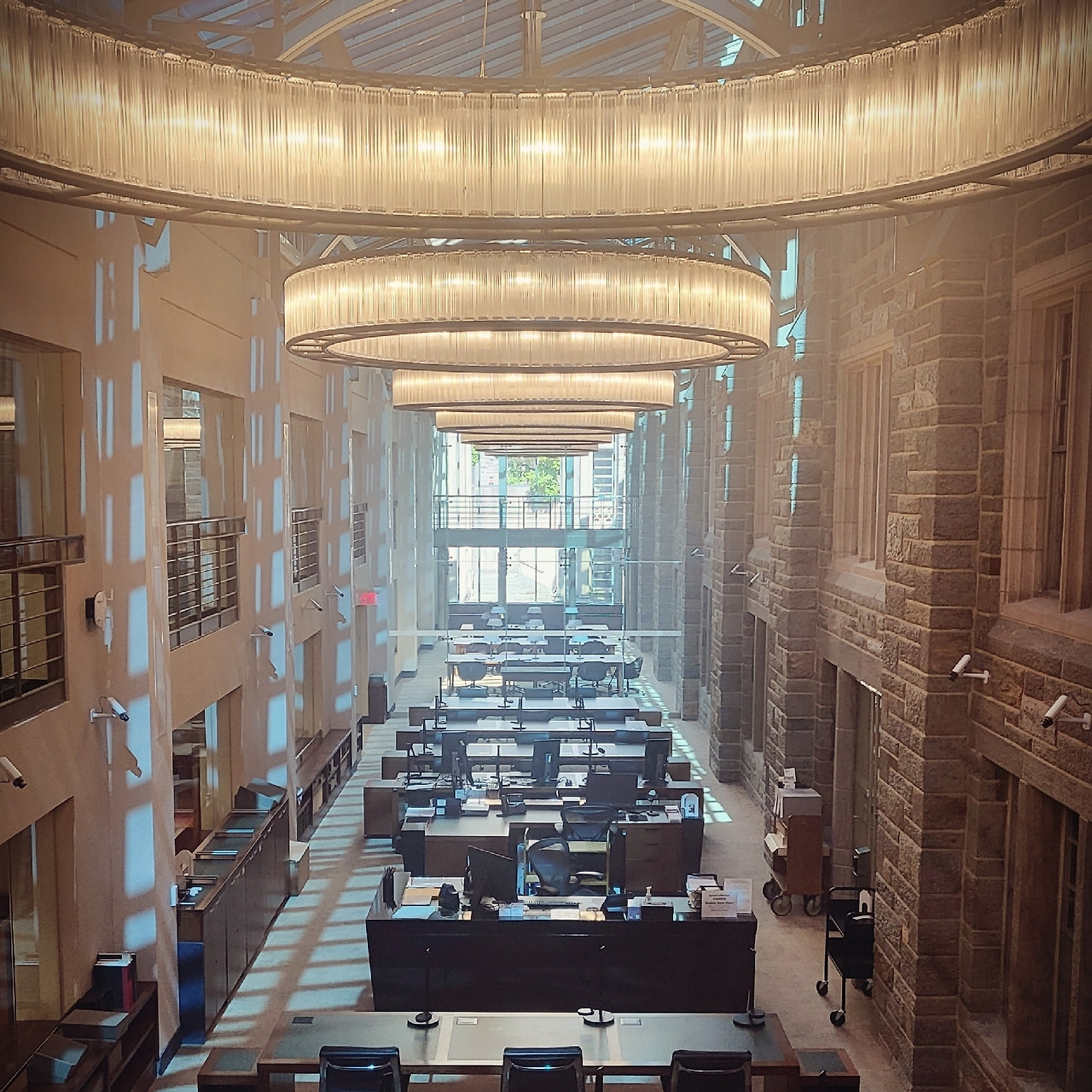 파이어스톤 도서관은 최근 10년에 걸친 리모델링을 마쳤는데 도서관 문을 닫지 않고 공사를 하기 위해 장서를 무려 네 번이나 옮겨가며 진행했다고 한다. 10년이라는 긴 세월을 참아준 학생도, 번거로운 이사 과정을 감내한 직원들도 대단하다는 생각이 들었다. 리모델링을 하면서도 건물의 원형을 보존하기 위해 일부 공간에는 옛 건물을 그대로 살려두어 거친 돌벽을 만지며 과거의 모습을 상상해 볼 수 있다. 한편 지하공간에 책을 보존하면 습기로 인한 문제는 없을지 궁금했는데 아직까지 특별히 문제가 발생한 적은 없다는 모양이다. 오히려 위층의 일부가 폭우로 인한 누수로 피해를 입은 적은 있다고 하니 물과 불이 책의 가장 큰 적임을 새삼 실감했다.