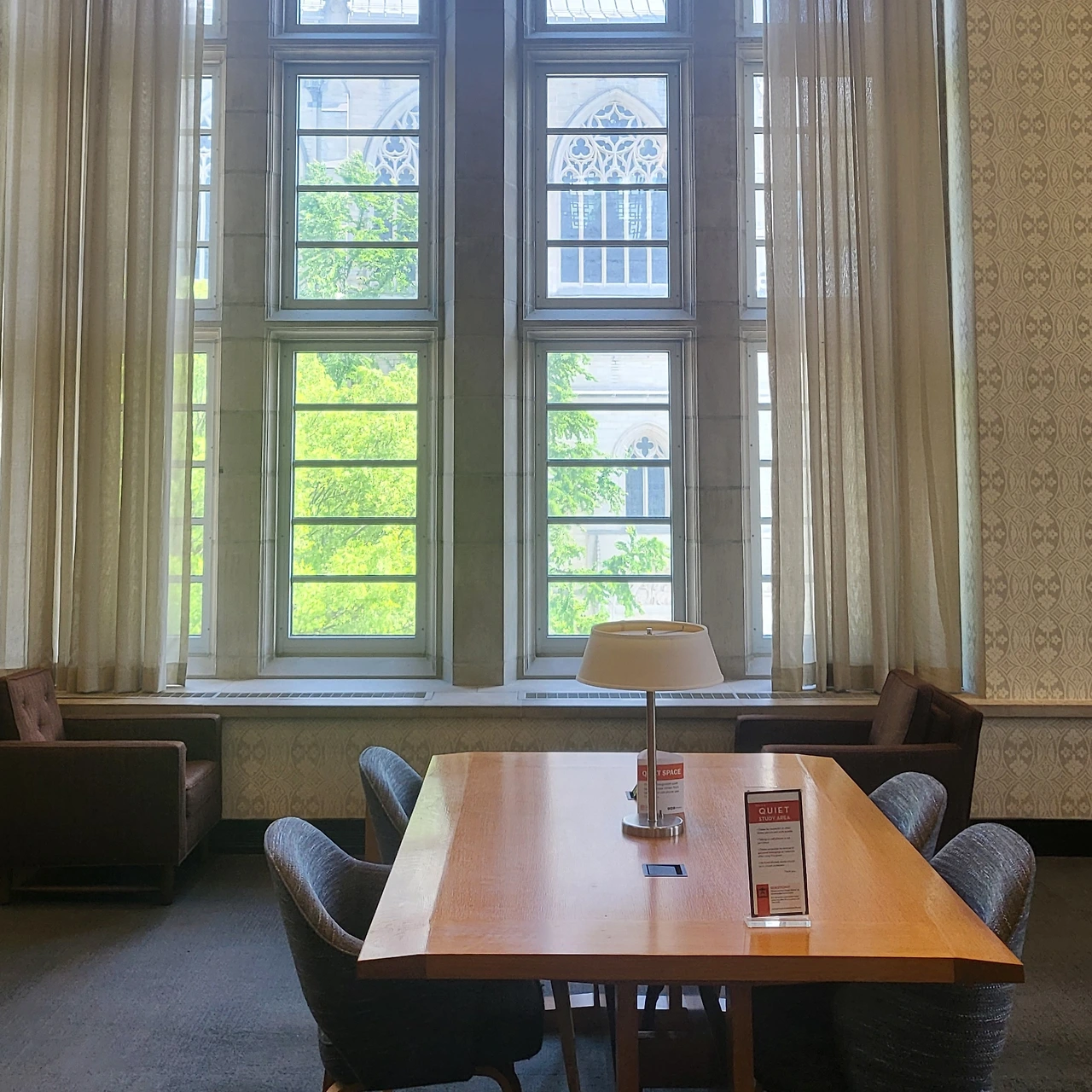 프린스턴 대학은 살인적인 공부량을 자랑하는 만큼 많은 열람실 책상들이 책으로 파묻혀 있는데, 저렇게 많은 책을 어떻게 빌렸나 했더니 여기는 대출책수에 제한이 없다고 한다. 설명해 주신 분 말로는 한 번에 1400권까지 빌린 사람도 본 적이 있다던데 도저히 감도 오지 않는다. 어쨌거나 지적 고난을 선사하는 만큼 학교의 지원도 아낌이 없어서 논문을 집필할 수 있는 개인 공간도 마련되어 있다. 읽던 안 읽던 1400권을 들고 오갈 걱정은 없다는 이야기. 한편 이곳은 학부생에게도 상당히 수준 높은 졸업 논문을 요구하기에 과거에는 4학년 학생들을 위한 개인 공간도 있었다고 한다. 이 열람석들은 리모델링을 하며 모두 없앴는데, 아쉬워하는 동문들을 위해 현재는 네 개 정도만 보존용으로 남겨져 있다.
