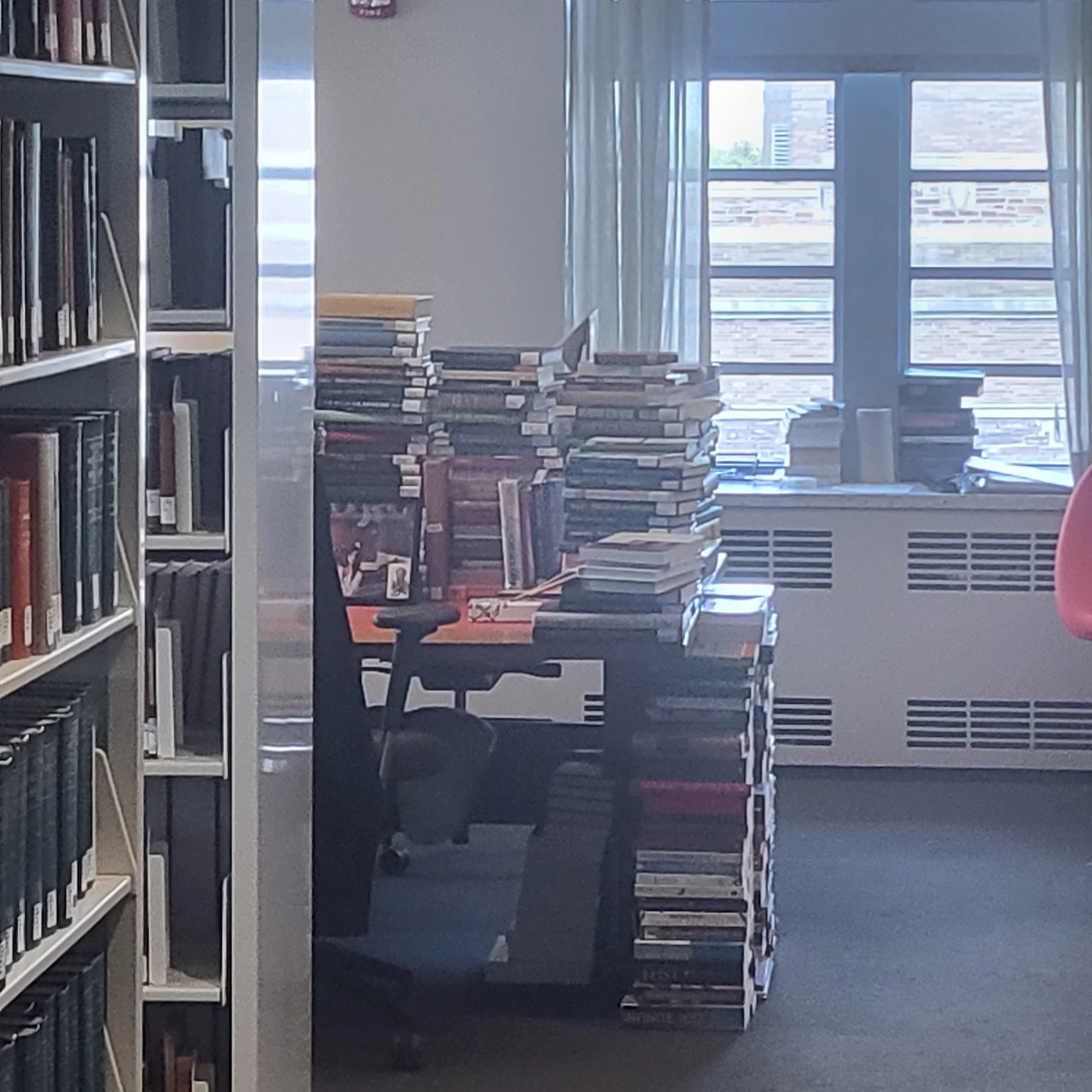 § 말 그대로 책이 산더미처럼 쌓여 있는 어느 대학원생의 책상을 보니 괜히 마음이 짠해진다. 오른쪽이 보존용으로 남겨진 4학년생 전용 열람석으로 많은 동문들이 찾아와 자신의 청춘을 불태웠던 공간을 보며 추억에 잠긴다고 한다. 한편 이 책상들을 다 없앴을 때 재학생들의 반발은 없었을까 궁금했는데 리모델링이 길었던 탓에 이곳을 기억하던 학생들이 모두 졸업을 해버려 아주 평화롭게 철거되었다는 아름다운 답변을 들었다.