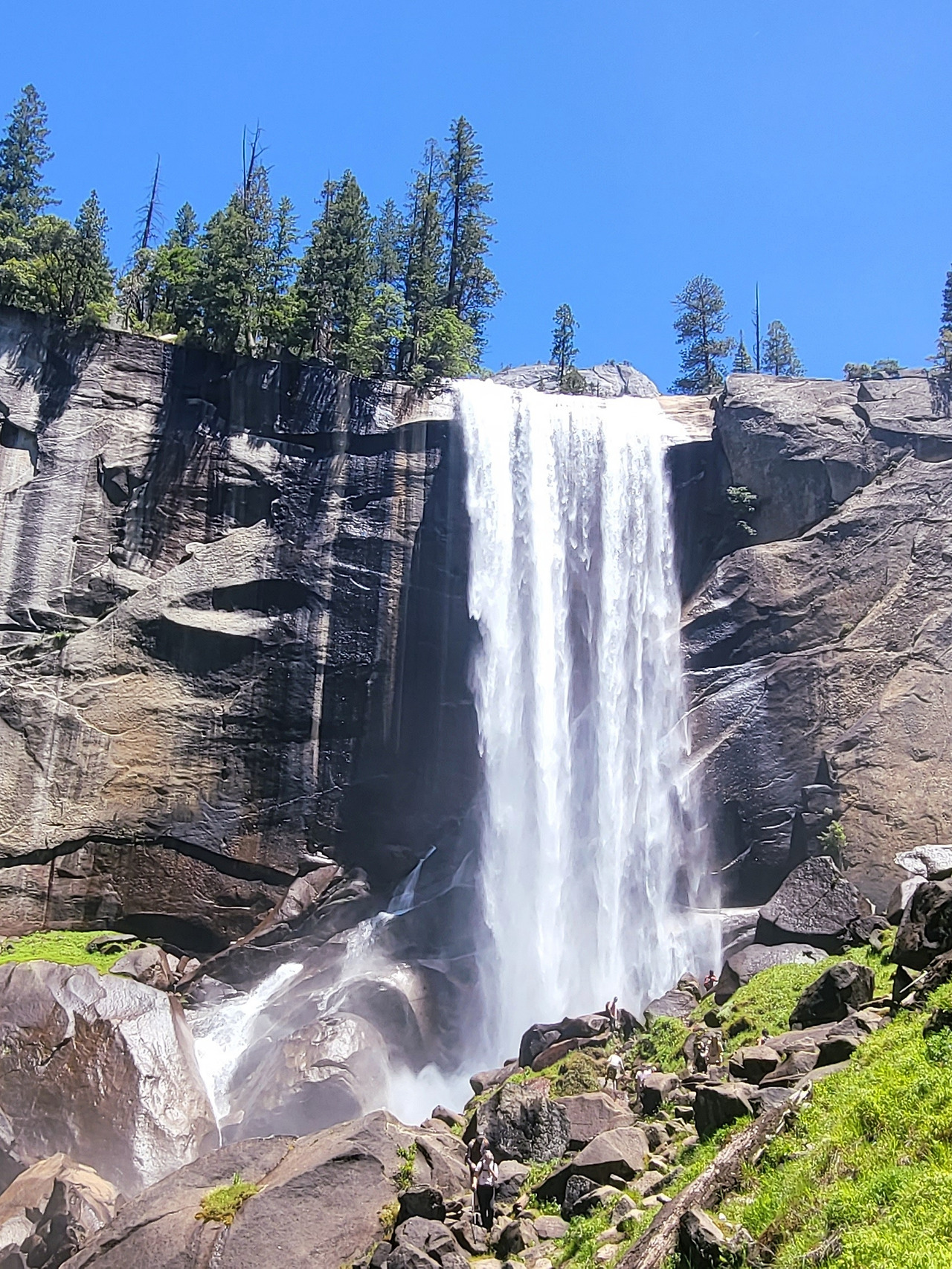 § Vernal 폭포와 바위 사이로 콩알만 하게 보이는 사람들. 폭포에 왔으니 폭포수에 흠뻑 젖어 보는 것도 재미있는 경험이 될 것 같다. 물론 나는 멀찌감치 서서 구경만 했지만.