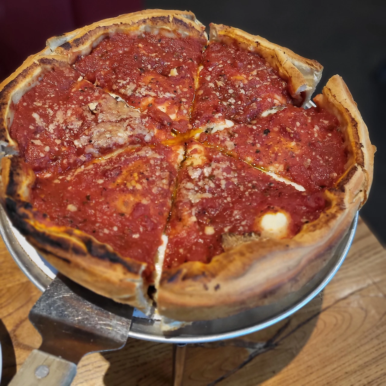 내가 시카고를 간다고 했을 때 다들 입을 모아 지오다노스 피자에 가야 한다고 했다. 여기가 시카고 피자 원조집인가 보다. 기대를 품고 찾아가 시카고 딥 디쉬 피자 하나와 찹 샐러드를 주문했다. 피자가 짜다는 평이 있어 조금 덜 짜게 만들어 줄 수 있냐고 했더니 이미 간이 다 되어있어 조절이 안된다고 해 그냥 먹었다. 그런데 먹고 보니 양념이 짜다기보다는 페퍼로니가 짜서, 페퍼로니가 없는 부분은 괜찮고 페퍼로니가 많은 부분은 좀 짜게 느껴졌다. 한편 피자가 느끼해서 샐러드를 같이 먹는 게 좋다기에 찹 샐러드도 주문했는데 새콤하니 무척 맛있어서 피자와 아주 잘 어울렸다. 그러나 모두가 경고한 대로 워낙 포만감이 커서 한 조각 이상 먹기가 어려워 남은 피자를 포장해 왔는데, 저녁까지도 배가 꺼지지 않아 아까운 마음에 겨우 꾸역꾸역 먹어 치웠다.어쨌거나 시카고 딥 디쉬 피자도 맛있지만 내 입에는 뉴욕 스타일이 좀 더 잘 맞는다. 미국 최고의 피자는 아직까지 롬바르디스인 걸로.