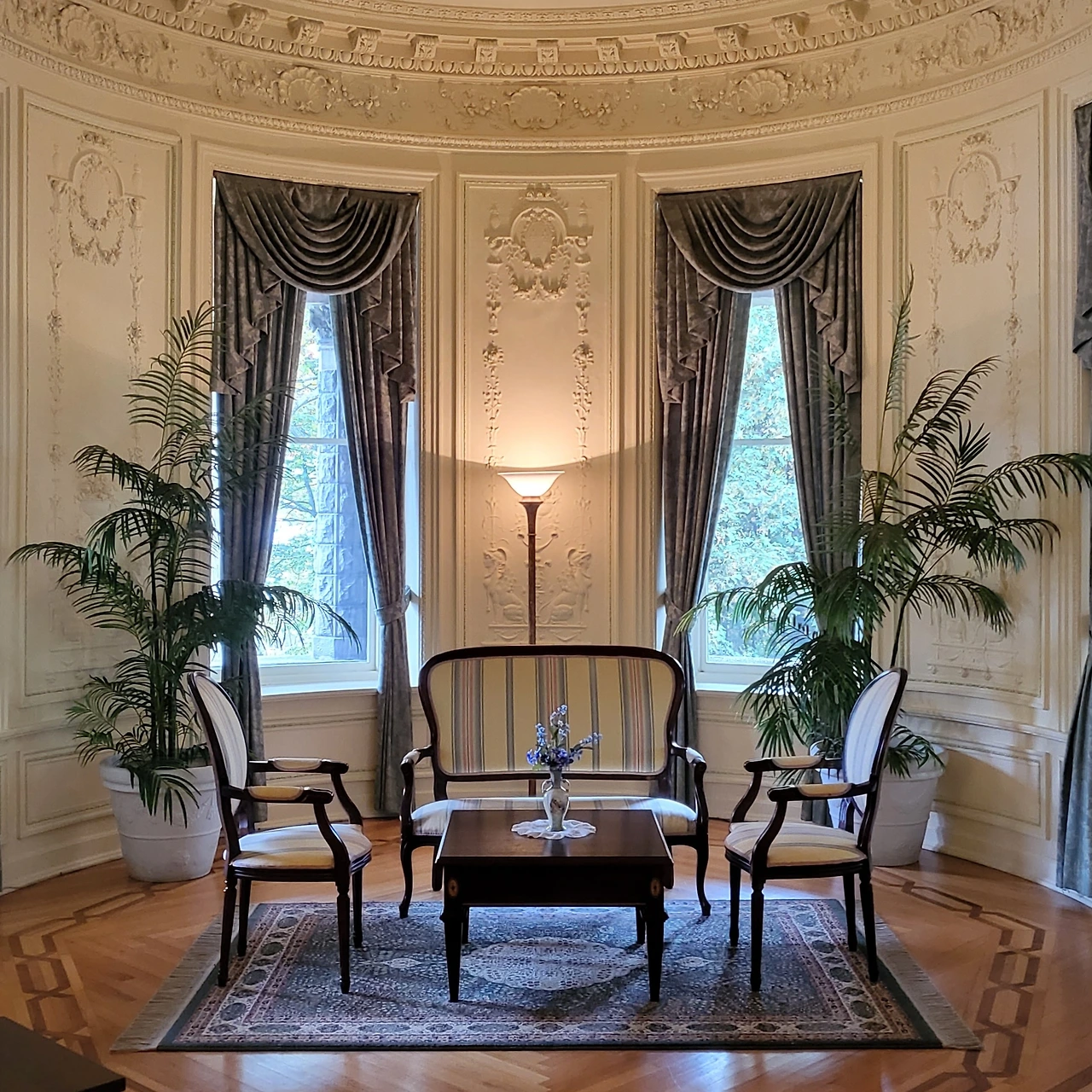 § 하트섬의 정원과 볼트 성 외관은 무척 아름다운데 반해 내부는 빌트모어 저택이나 다른 화려한 저택들에 비하면 수수한 편이다. 왼쪽 아래는 조지 볼트가 그토록 사랑했던 아내 루이스 볼트의 초상화