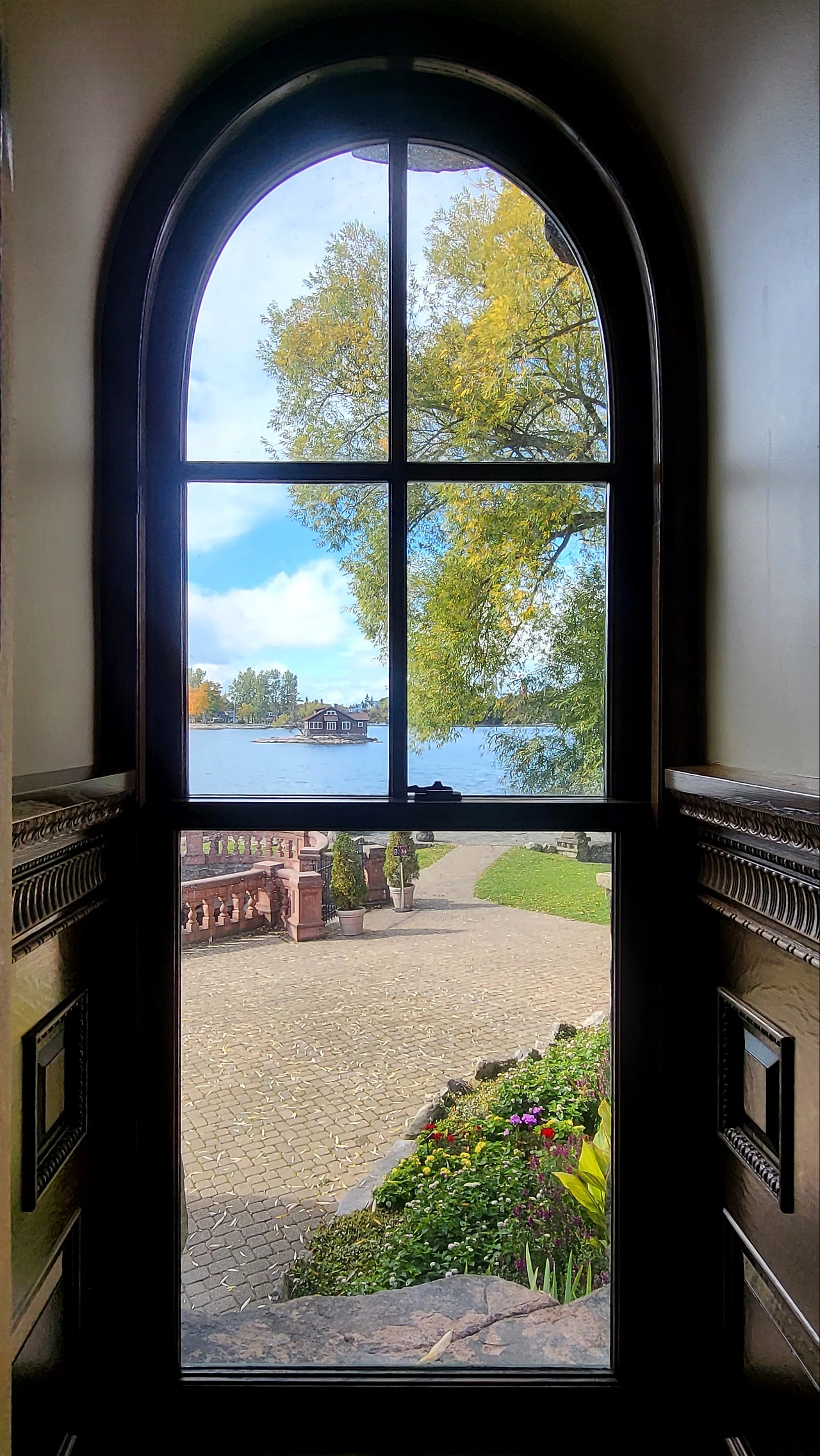 §성의 창 밖으로 보이는 정원과 싸우전드 아일랜드. 싸우전드 아일랜드 제도는 셀 수 없이 많은 자그마한 섬들이 동동 떠있어 무척 아름다운데 높은 곳에서 보아야 전경을 한눈에 즐길 수 있다. 때문에 킹스턴에서 배를 타지 못한 대신 전망대에서 풍경을 봐야겠다고 생각했는데, 어처구니없게도 전망대 운영시간이 오전 10시부터 오후 1시까지란다. 근로자에게는 천국 같은 직장이겠으나 관광객에게는 너무 가혹하고 박한 처사이다. 결국 시간이 늦어 전망대에는 오르지 못하고 캐나다와 미국을 잇는 다리를 오가며 본 풍경으로 만족해야 했다.