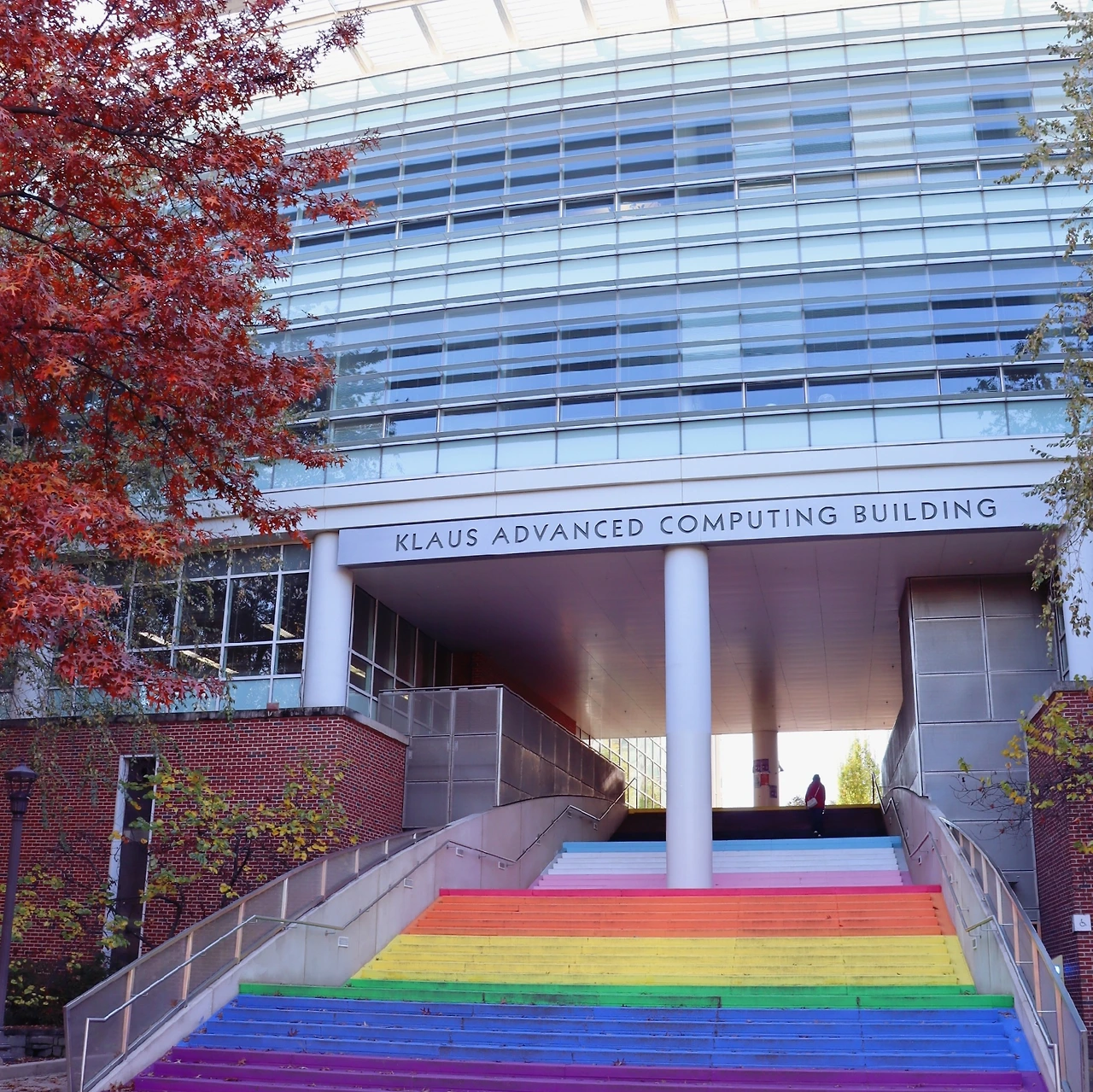 § 남편의 연구실이 있는 Klaus Advanced Computing Building. 이곳도 애플처럼 최초로 컴퓨터를 고안한 튜링에 대한 경의를 담아 무지개 색으로 계단을 칠한 것이 아닐까 추측해본다. 이유야 어찌 되었든 예쁘다. 한편 교내의 안내판은 누가 장난으로 그런 건지 철자가 한두 개씩 떨어져 나간 것이 많았다. 이 간판에는 t자가 빠져있다. 오래전에 소나타 자동차의 s자를 가지고 있으면 서울대에 간다는 괴소문이 퍼져서 한동안 길에 <onata>들이 무수히 돌아다녔던 우스운 기억이 떠오른다. 여기도 조지아 공대에 가고 싶은 누군가 부적처럼 떼어간 걸까?