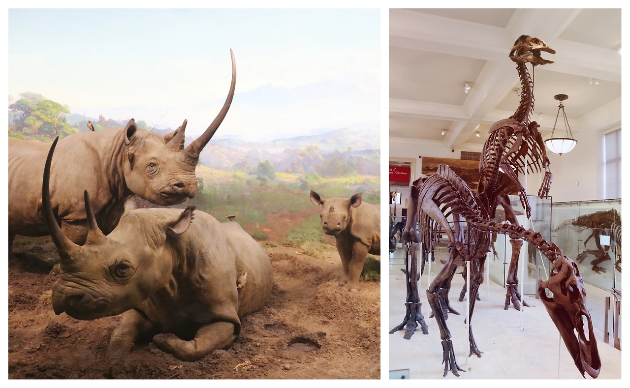 § 너무 사실적이라 그림처럼 보이는 코뿔소들과 거대한 공룡들. 이 외에도 당장에라도 유리 밖으로 성큼 걸어 나올 듯한 사실적인 전시품들이 굉장히 많다. 이 나이에도 부끄럽게 공룡을 좋아해서 나도 모르게 소리 지르며 공룡들 사이를 뛰어다녔다. 물론 이 녀석들이 살아 움직인다면 얘기가 또 달라지겠지만.