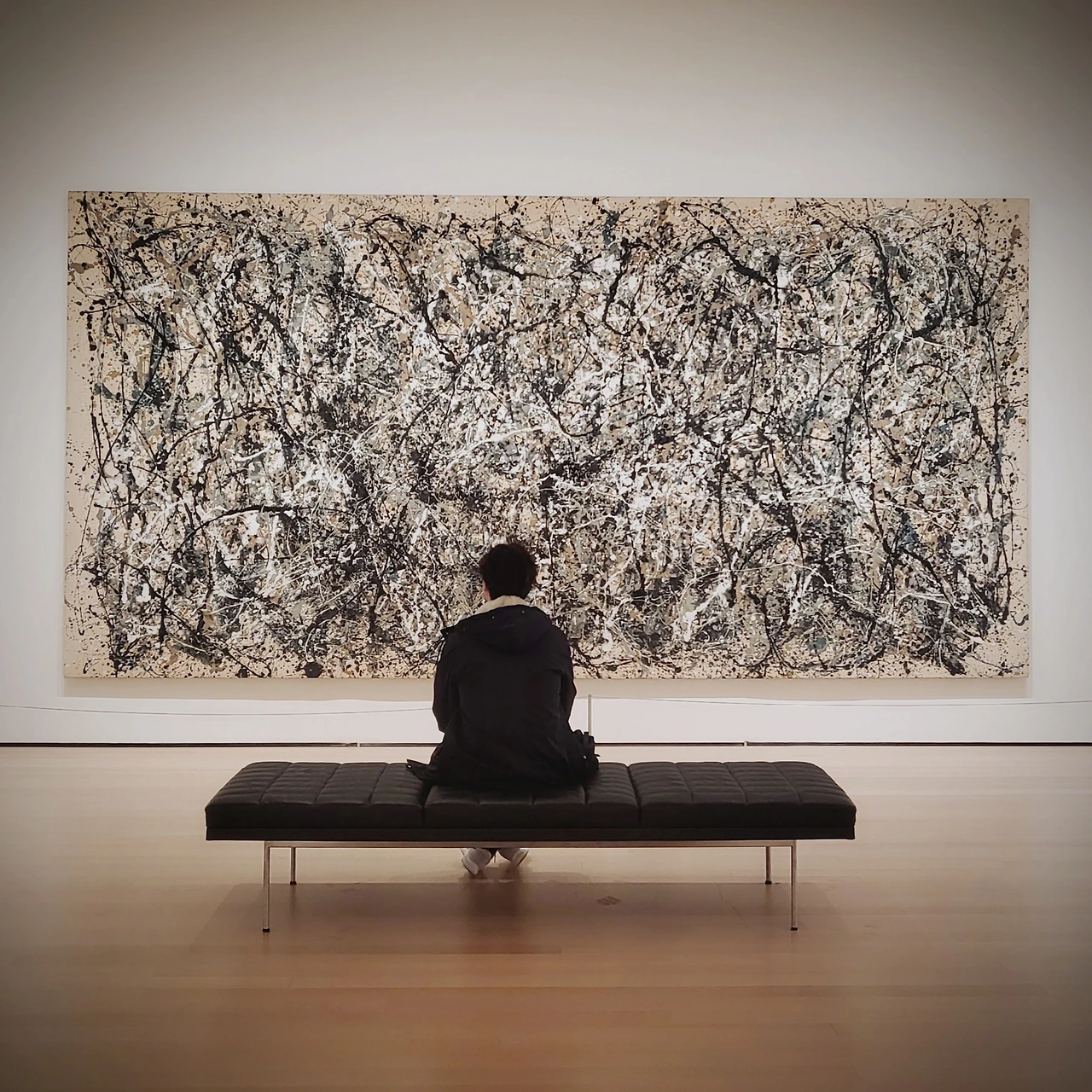 § 잭슨 폴락의 작품 앞에 앉아 쉬고 있는 남편. 필시 혼돈의 카오스를 느끼고 있었을게다. 허나 열심히 감상 중이라고 착각한 많은 사람들이 남편의 뒷모습을 촬영하고 있었다. 남편은 잭슨 폴락은 고사하고 현대 미술의 ㅎ자도 모르는 사람이라고 말해주고 싶어 입이 근질거리는 것을 간신히 참았다. 어쨌든 미술관에만 오면 급속히 지친 땡벌이 되어 버리는 남편 덕분에 분위기 있는 사진은 한 장 건졌다.