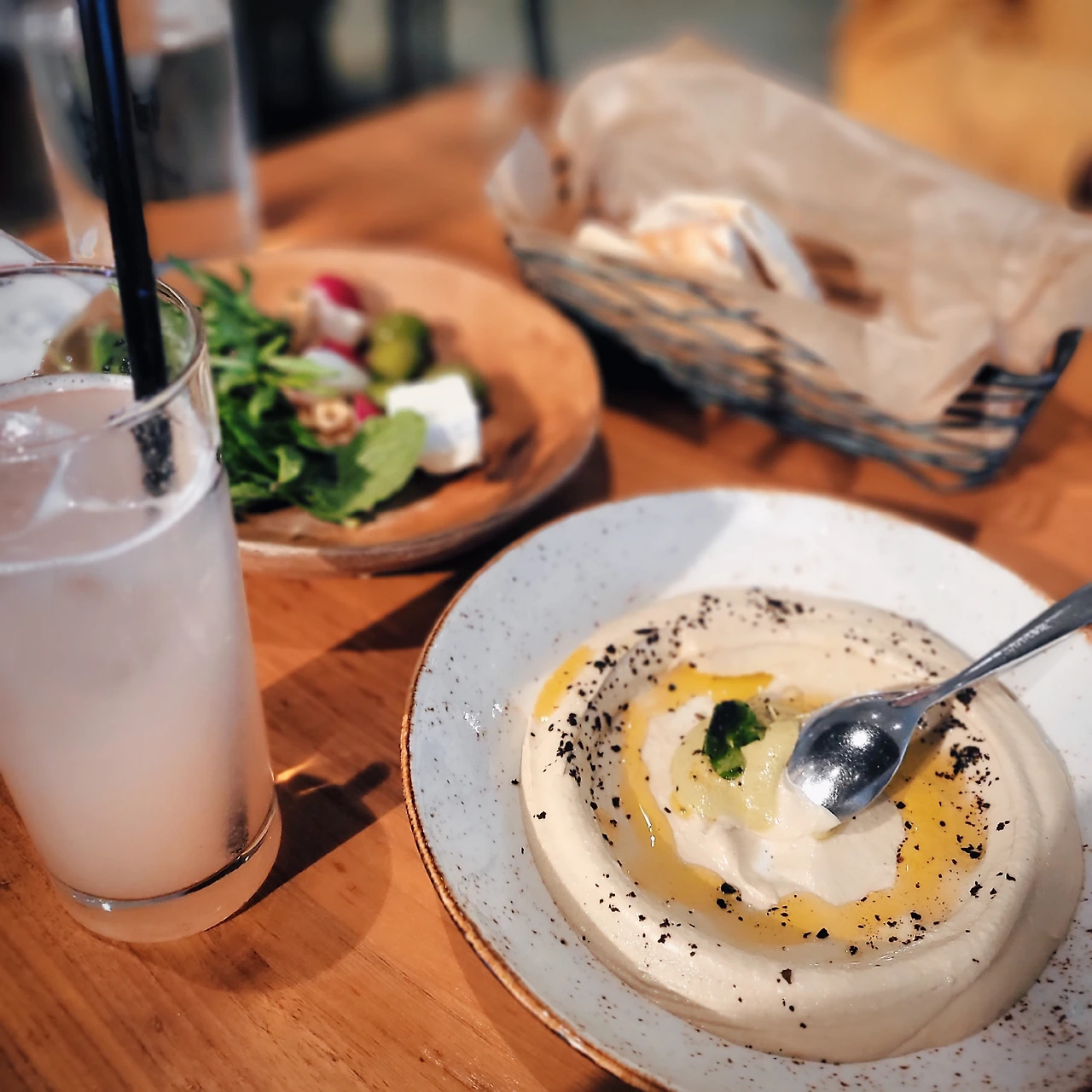 지인의 강력 추천으로 가게 된 페르시아 레스토랑. 원래 크리스마스 때 가보려 했으나 대기가 너무 길어 포기하고 평일인 생일 때 다시 방문했다. 우리는 후무스와 그릴드 쉬림프, 양고기 케밥, 피치 소다를 주문했다. 후무스는 건강한 맛인데 함께 나오는 빵이 폭신해서 맛있었고, 새우는 딱 두 마리만 나오는데 통통해서 부족하다는 느낌이 없다. 후무스는 허브와 함께 나오는데 말이 좋아 허브이지 그냥 풀떼기이다. 이걸 무슨 맛으로 먹나 싶은데 후무스랑 같이 먹으면 신기하게 맛있다. 양고기 케밥은 양이 엄청나게 많아서 하나를 둘이 나눠 먹었는데도 상당히 남겼다. 고기는 전혀 질기지 않고 냄새도 안 나서 남편은 입에 잘 맞는다며 좋아했다. 그러나 솔직히 나는 중동요리의 낯선 향기가 끝내 적응되지 않았다. 호불호가 갈릴 수 있는 곳 (Rumi's Kitchen Homepage)