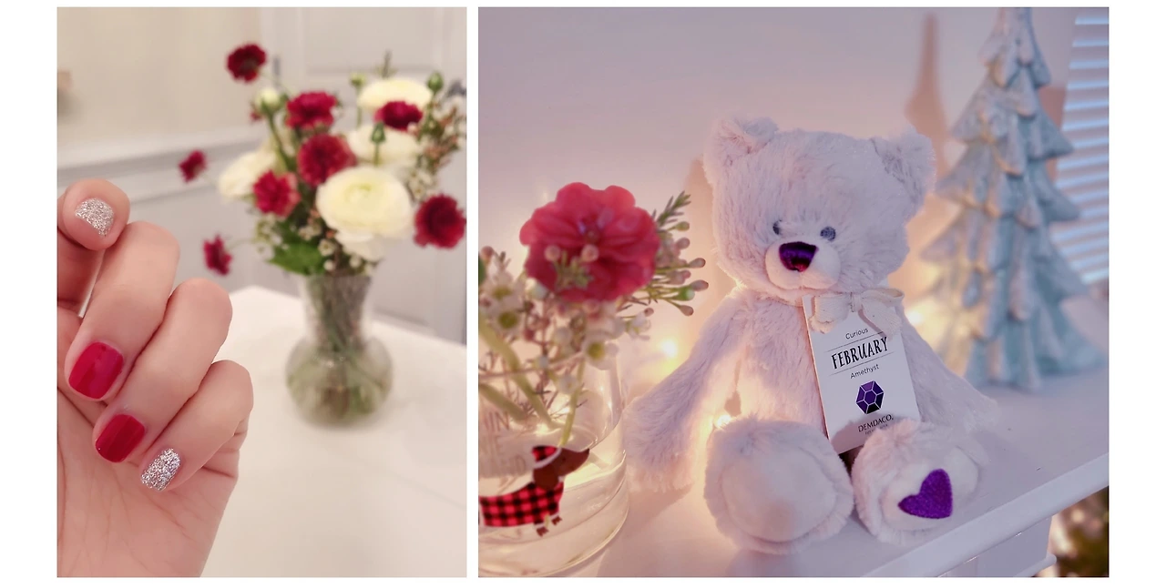 이때는 연말이어서 크리스마스 느낌 낸다고 빨간색으로 골랐다. 손 사진은 예쁘게 찍기가 어려운 관계로 꽃과 인형으로 어떻게든 무마해 봤다. 오늘은 따스한 바닷가로의 여행을 앞두고 있어 라벤더랑 민트로 골랐는데 아주 마음에 든다. 손끝에 일찌감치 봄이 왔다.