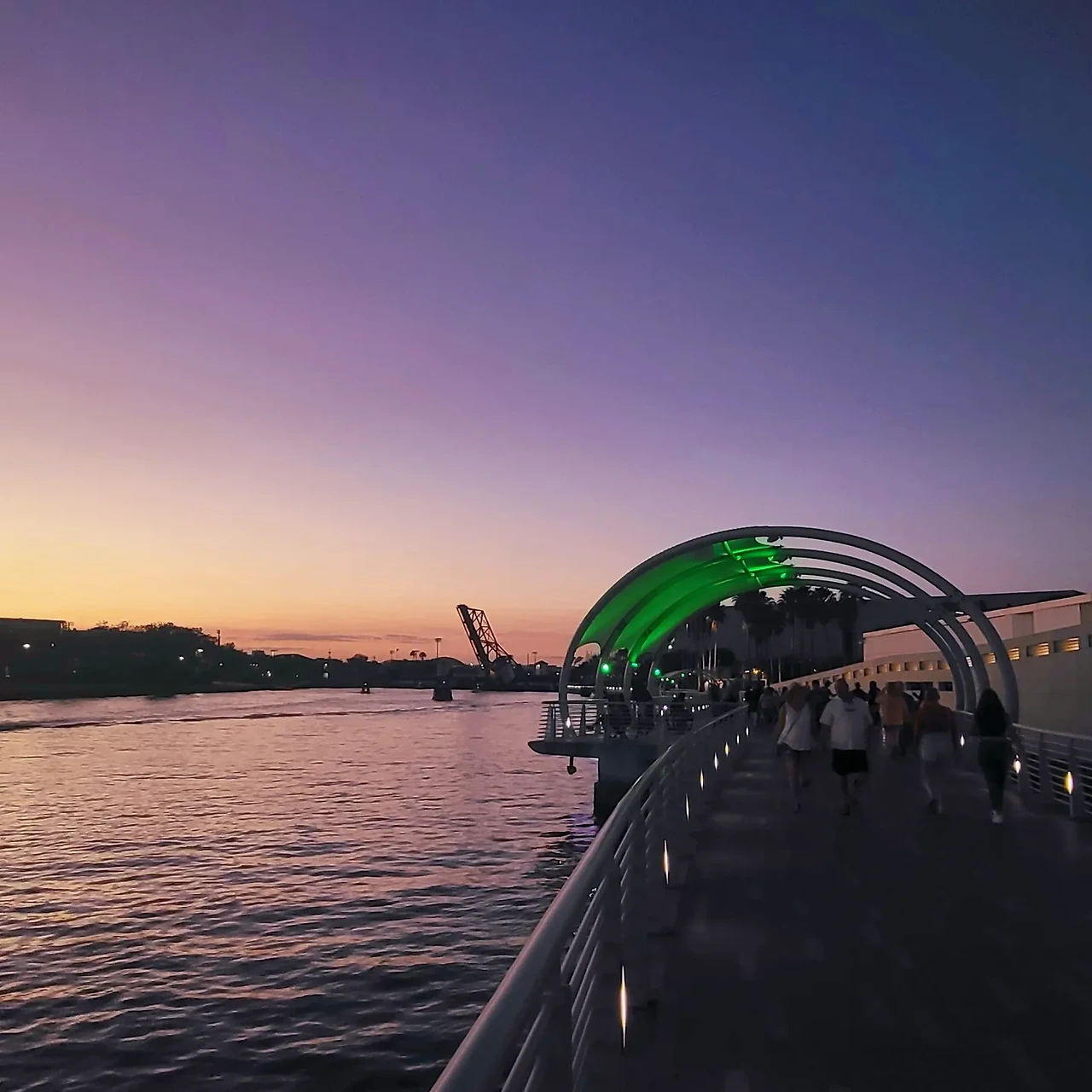 § 일몰을 보며 산책하기 좋은 탬파의 리버워크. 운이 좋으면 여기서 돌고래도 볼 수 있다고 한다. 낮에는 한여름처럼 덥던 날씨가 저녁이 되자 선선해져서 걷기에 딱 좋았다.