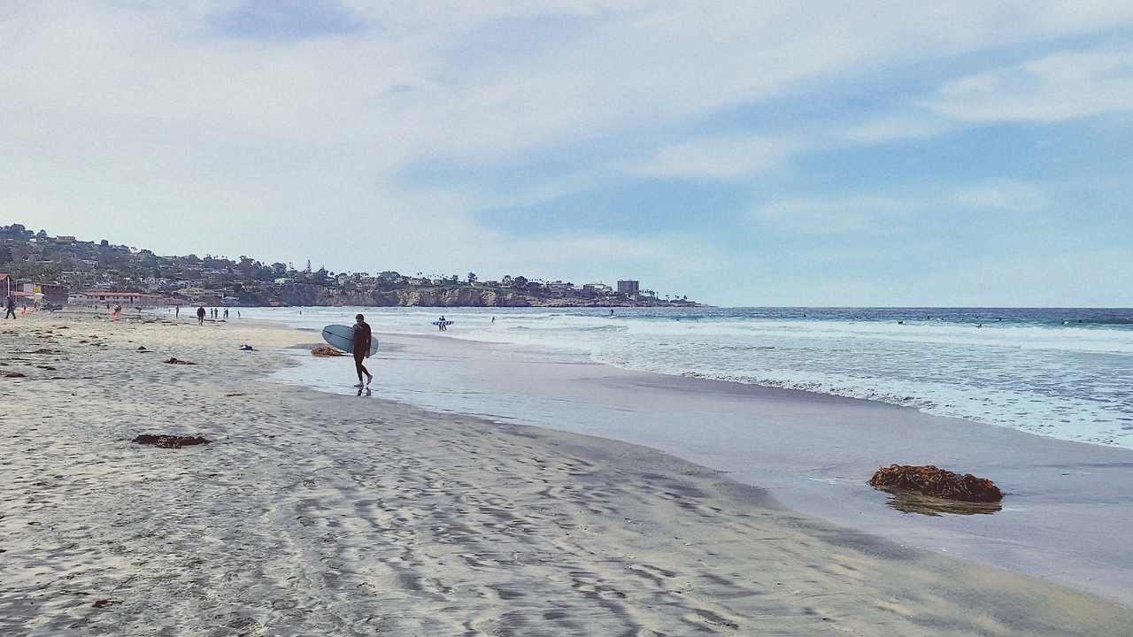 가장 처음 들른 곳은 샌디에이고 바로 위에 있는 <라 호야 비치, La Jolla Beach>이다. 아침에 구름이 많고 날이 쌀쌀했는데도 바다에는 서핑을 즐기는 사람들이 많았다. 그도 그럴 법한 게 파도가 아주 좋아서 서핑의 ㅅ자도 모르는 내가 봐도 오늘 같은 날 서핑을 하지 않으면 두고두고 후회될 것 같기는 했다. 서핑보드 위에서 솜씨 좋게 균형을 잡아가며 쉴 새 없이 밀려드는 파도를 타고 내달리는 모습을 보니 내 가슴까지 시원해지는 기분이다. 언젠가 서핑을 배워보고 싶었는데 서핑이 취미인 친구로부터 젊었을 때와 달리 이제는 조금만 서핑을 해도 기미가 올라와서 잘 타지 않게 되었다는 슬픈 얘기를 듣고 마음을 접어야 했다. 사회적 나이는 숫자에 불과하다고 우길 수 있을지 몰라도 신체적 나이는 잔인할 만큼 정직하다. 한편 차에서 내릴 때 실수로 파우치를 떨어트린 모양인데 그것도 모르고 신나게 바다에 다녀왔다. 그런데 차에 돌아오니 고맙게도 누군가 고이 주워서 사이드 미러 사이에 끼워 놓았다. 샌디에이고는 치안이 좋다는 말이 과장이 아니었나 보다. 그래서인지 샌디에이고에 대한 인상은 좋게 남았는데 첫인상만큼 끝인상도 중요함을 새삼 느낀다,