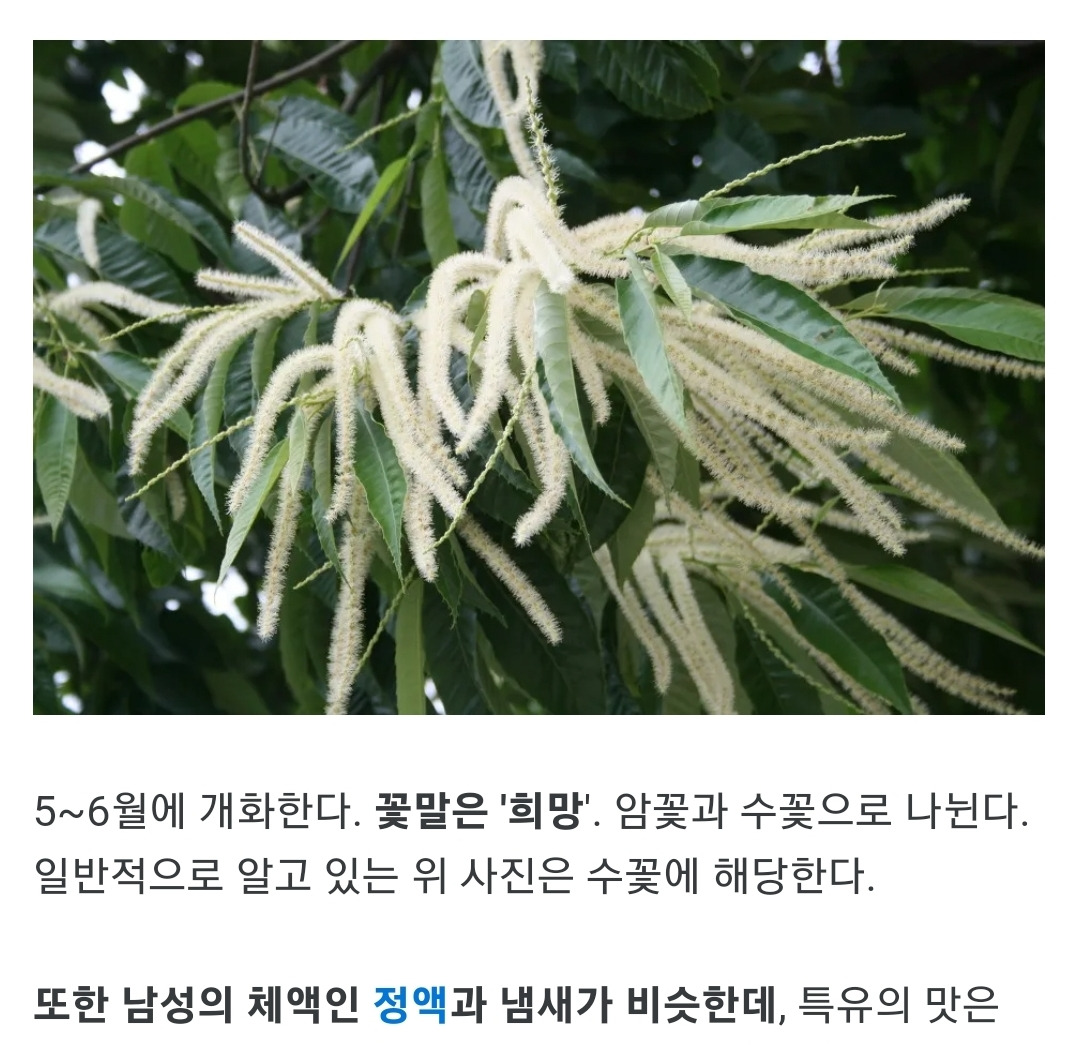 ( * 아시다시피(?) 밤꽃향은 꽃의 존재 자체로써보다, 대한민국의 많은 성교육 책에 남자의 정액에 관한 설명이 나올 때마다 짝꿍처럼 등장해 주시는 단어가 아닌가. 정액의 냄새는 마치 밤꽃의 향과 비슷하다며. )