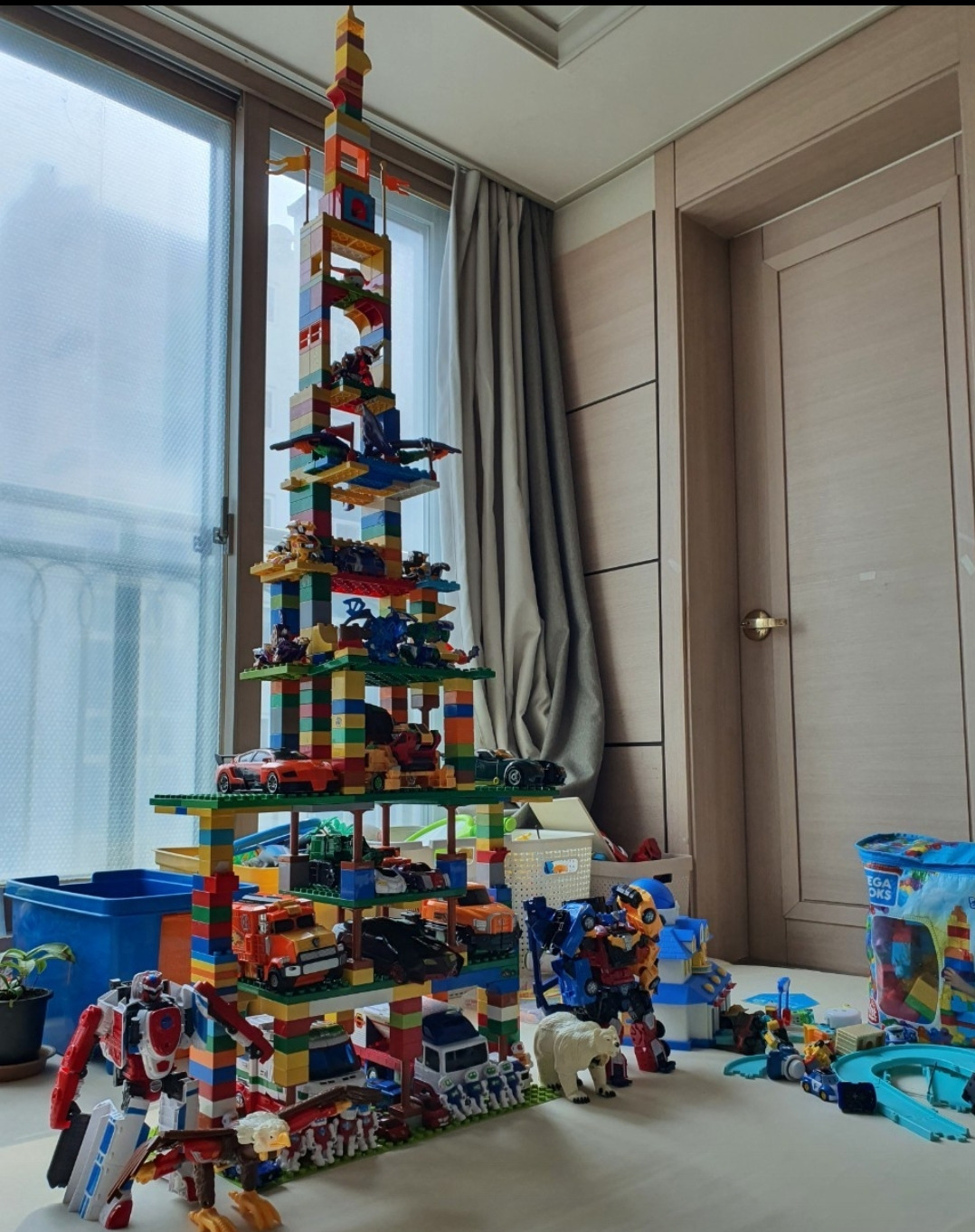 아이가 아빠랑 만든 레고+카봇 탑. 이런건 진짜 아빠의 특권. 조립이나 이름외우기 같이 노력해서 되는 것이 아니다.ㅜ