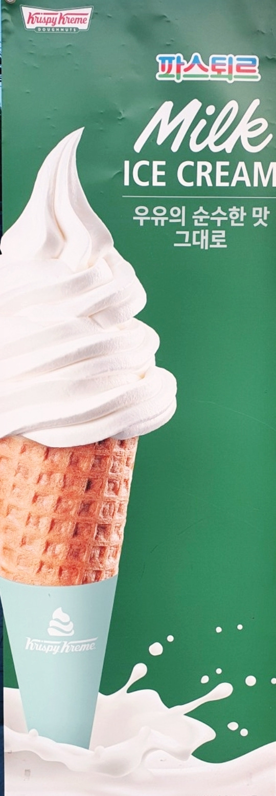 최근 오랜만에 기차역에 들렀는데, 어려운 길 운전으로 긴장했다 풀렸는지 커피보다 단 게 당겼다.역사 안에서 주차장으로 가는 길에 마침 도넛가게가 있었고, 그 앞에는 우유로 만들었다는 소프트아이스크림 홍보포스터가 붙어 있었다. 나는 파스퇴르우유에 대해 아무 생각이 없었는데 그포스터는 마치 엄청난 고급우유임을 강조하는 것처럼 보였다. 이래나저래나 그 '아이스크림'을 먹고 싶었는데 그림 속 아이스크림은 콘에 올려져 있었다. 도넛 가게는 말 그대로 도넛을 파는 곳이지 아이스크림전문점이 아니기에 분명 컵이 안될 것 같았다.