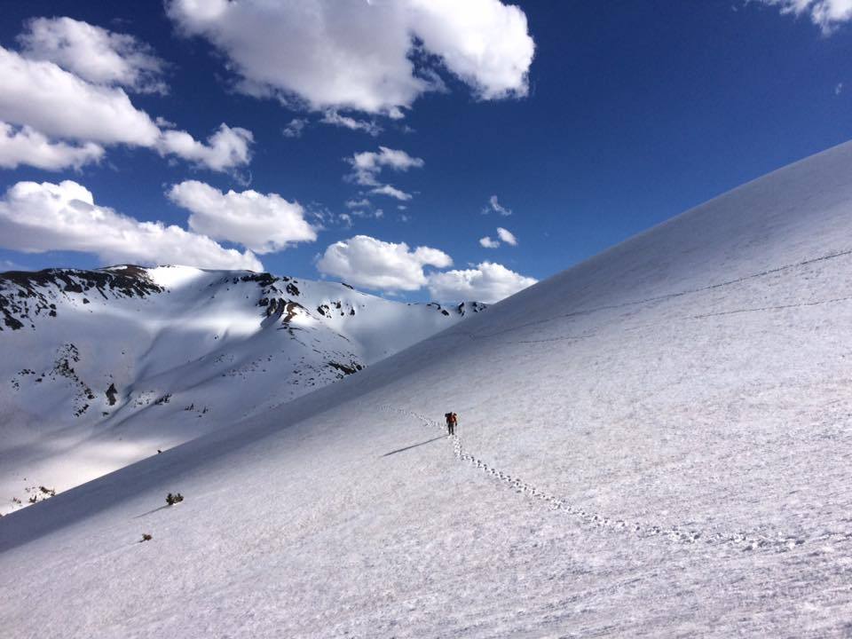 하늘이의 최고 고도는 2010년 한국 청소년 오지탐사대에서 다녀온 중국 깡션카의 4,772m 봉우리였다. 그 기록대로라면 이미 그녀는 최고 기록을 경신하고도 남는 높이에 서 있는 것이었다. 나는 이미 히말라야 에베레스트 베이스캠프 인근의 칼라파타르에 다녀온 적이 있어 5,000m대의 경험이 있었지만 그녀는 처음이었기에 걱정이 앞섰다. 아침 7시가 조금 안 된 시간, 태양은 조금씩 모습을 드러내는 듯했다. 북서쪽 방향에서 오르기 때문에 태양의 따스함을 온전히 즐길 수 없었다. 하늘이를 앞에 세우고 천천히 따라갔지만 속도가 너무 늦었다. 아무래도 설산에 대한 경험이 부족으로 피켈과 아이젠을 효율적으로 활용하지 못하고 있는 듯했다. 시간을 더 지체하다간 발가락이 모두 얼어버릴 것 같았다.