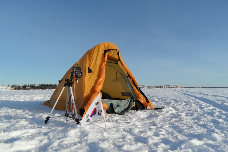 남극에 세종기지가 있다면, 캐나다 옐로 나이프엔 희종 기지가 있다. 비록 장비는 두대의 카메라와 삼각대, 침낭, 버너, 코펠뿐이지만 어디 어느 곳의 기지와 비교해도 손색이 없는 희종 기지를 내 힘으로 세우게 된 것이다.
