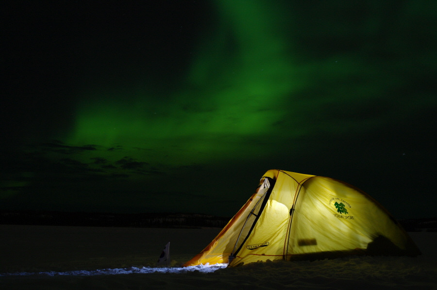 꽁꽁 얼어붙은 그레이트 슬레이브 레이크 위에 세운 희종 기지에서 밤을 지새우며 옐로 나이프 오로라를 탐사했다. 그렇게 혹독했단 밤이 지나가고 다음날 아침, 옐로 나이프에 태양이 떠올랐다. 주위에는 밤새 추위와 싸웠던 흔적들이 산재해 있었다. 버너로 눈을 녹여 밥을 지었다. 그리고 스팸을 살짝 구워 간단한 아침을 준비했다. 얼어붙은 호수 위에서 먹는 아침은 생각 이상으로 훌륭했다. 그렇게 캐나다 옐로 나이프 오로라 탐사는 이틀 동안 계속되었다. 이틀 밤을 텐트에서 지새우며 챙겨 온 와인마저 얼게 만드는 영하 40도의 추위에서 싸워야만 했지만 아름다운 북쪽의 빛, 오로라를 만나는 감동은 그 모든 것을 잊게 만들어줬다.