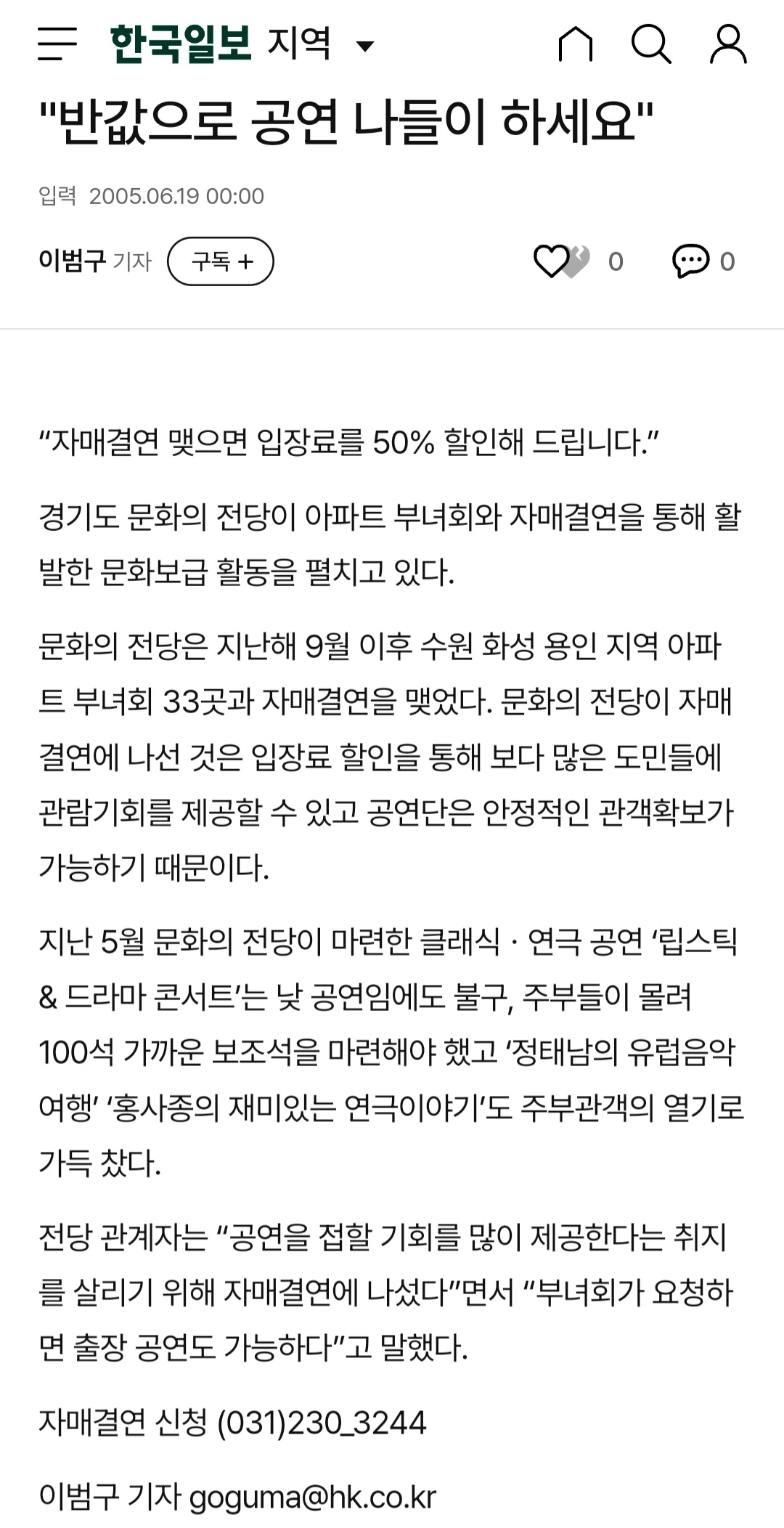 2004년 경기도문화의전당(현 경기아트센터) 마케팅팀에서 공연장 홈페이지 관리, 티켓 판매, 홍보·마케팅 등 일을 하던 내게 사장님은 갑자기 공연기획서를 하나 써오라는 지시를 내리셨다. 그분은 공연 분야 전문가가 아닌 직원들도 뽑아서 새로운 시각에서 기획서를 써오라는 기회를 주셨던 분으로 매우 무섭게 극장을 경영하셨던 CEO였다. 그 당시 창의적인 관점, 열린 플랫폼, 핵심/맞춤형 고객별 마케팅, 극장 재정자립도, 문화예술기획자의 꿈 등을 직원들에게 코칭해주신 고마운 은인이기도 하다.