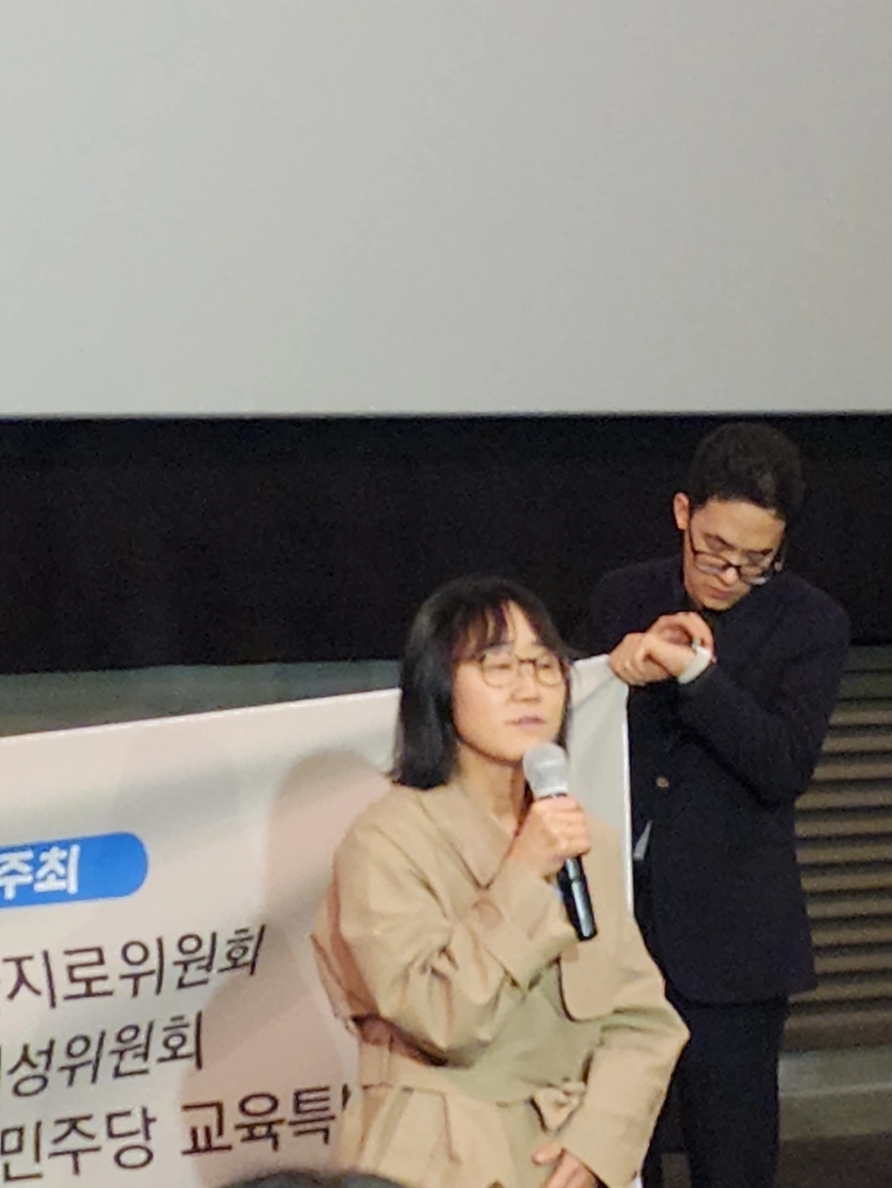 영화상영 후 소감을 나누던 한빛 아버지 이용관 님은 “현실에서 오유진 경감은 없다. 오유진 경감이 하는 역할을 모두 피해자 부모가 모두 해야 한다”며 울분을 토했다. 피해의 아픔을 추스리기도 힘든 학부모가 그 모든 진실을 밝혀야 함을 밝혀야 하는 현실에 대해서 통탄했다.