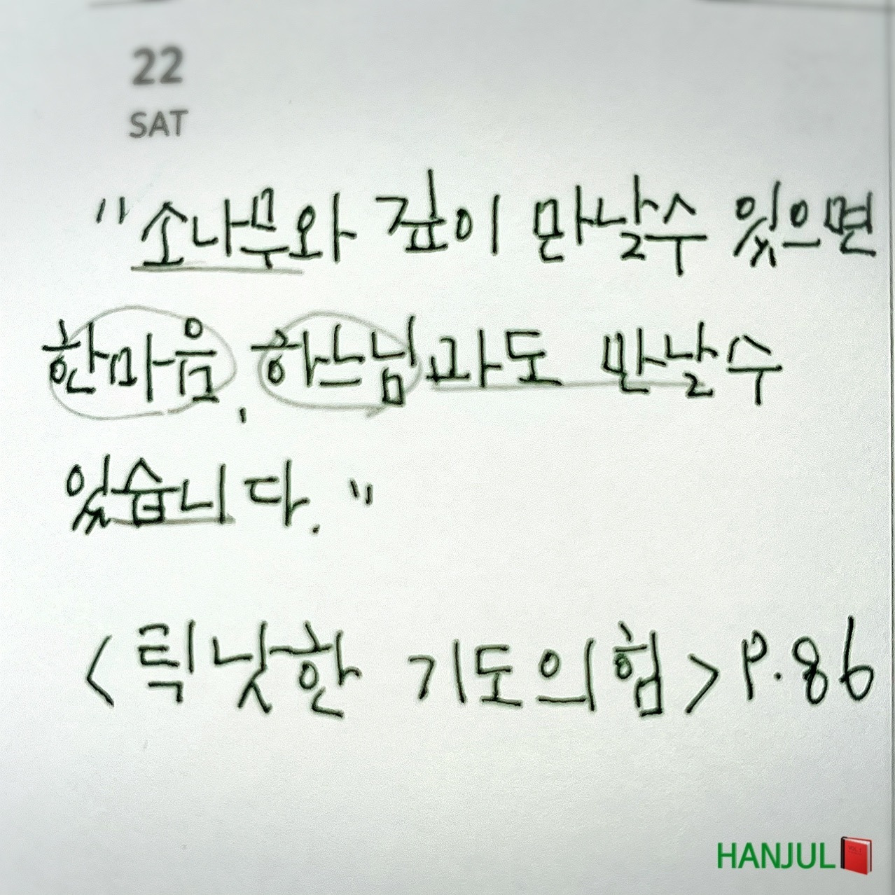 한줄 책방 오픈 기념은 틱낫한 스님의 <틱낫한 기도의 힘>에서 골랐다.