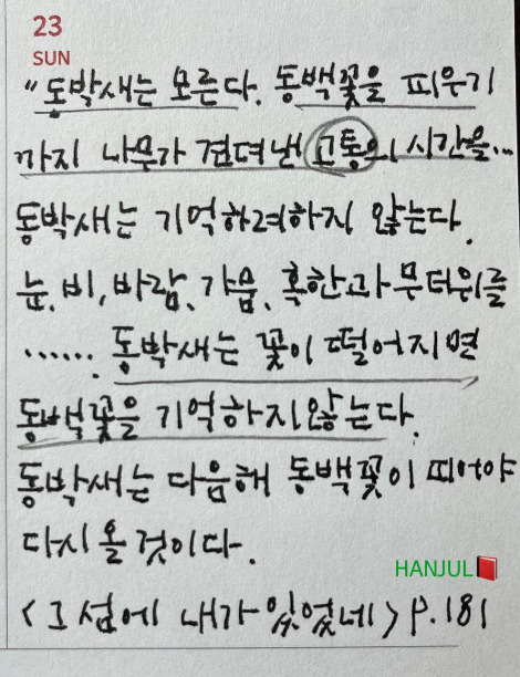 동박새가 어찌 동백나무가 견딘 고통과 혹한 무더위까지 헤아리랴.