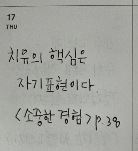 때로는 너무 과장되게 확대시켜 수선을 떨기도 하지만 때로는 별 것 아닌 걸로 치부하고 그냥 꽁꽁 싸매서 깊은 곳에 처박아두려한다. 하지만 상처나 고통은 모른 채 한다고 해서 사라지지 않는다. 오히려 굼실굼실 더 크게 자라나 나중에는 나를 잡아먹는다. 그때그때 자신을 돌아보고 자신의 감정을 표현하는 것은 아주 중요하다.