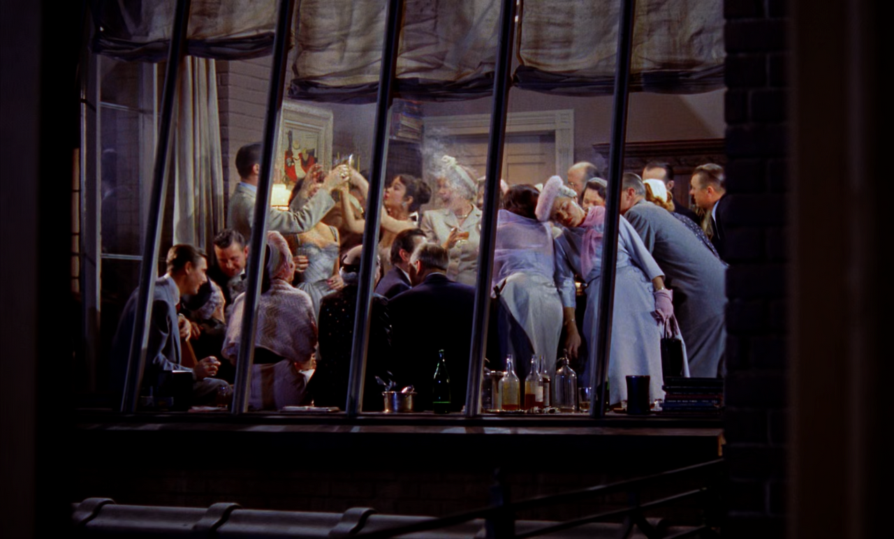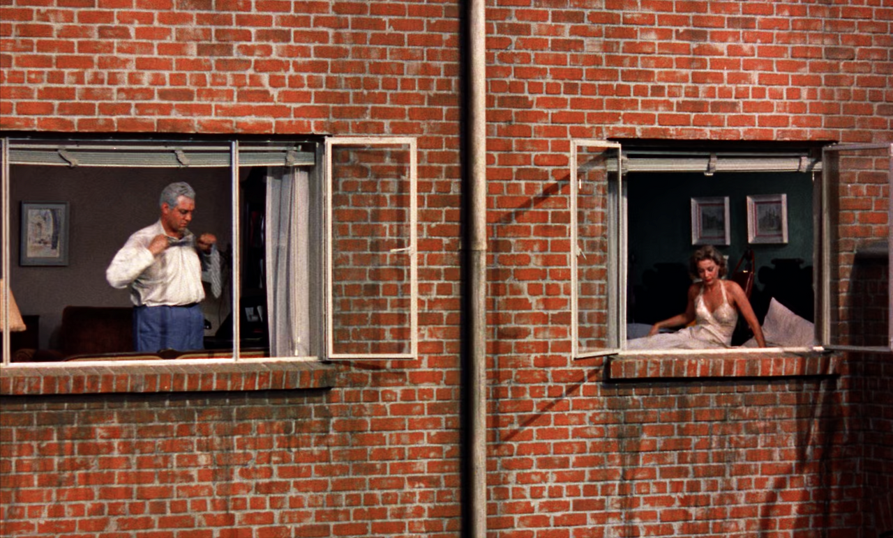 리사는 제프를 위해 저녁을 준비하지만, 앞서 언급한 문제로 심란해진 제프는 리사에게 퉁명스러운 말을 뱉게 된다. 대화 도중에 저녁의 이웃들을 둘러보는데, 항상 발레를 연습하는 여자의 집에 초대된 남자들과 피아노를 치는 작곡가, 혼자 쓸쓸히 술을 마시는 여자와 건너편의 부부의 모습을 보게 된다. 제프의 알 수 없는 눈빛과 각 이웃의 행동이 창을 통해 교차되는 장면을 보는 묘미가 있었고, 알게 모를 서스펜스를 느낄 수 있었다. 다시 시작된 리사와의 대화에서 그는 사진작가로 활동하면서 겪은 고충을 생생하게 들려주며 이런 생활을 리사가 감내하기 힘들 것 같다고 주장하지만 리사는 단지 제프를 너무 사랑할 뿐이라고 답하고 그를 떠난다. 그날 밤, 의자에서 잠들다가 빗소리에 깬 제프는 건너편 부부 중 외판원 남편이 검은 옷을 입고 큰 서류가방을 든 채 황급히 어디론가 떠나는 모습을 보게된다. 그를 수상쩍게 생각하면서 제프는 잠결에 다시 눈을 감는다. 이 때 새벽의 다른 집들도 비추는데, 그곳의 거주 분위기를 잘 표현했다고 생각한다.