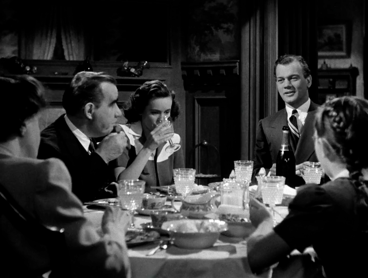 이어지는 장면에서는 산타 로사에 살고 있는 찰리의 누나 뉴튼 부인의 동네를 비춘다. 오프닝 시퀀스와 마찬가지로 마을의 풍경부터 집의 창문 그리고 여자 주인공 찰리를 순서대로 보여준다. 찰리의 가족은 은행원 아버지가 있고 찰리 밑으로 두 명의 동생이 있는 평범한 가족이다. 찰리는 이러한 따분하고 평범한 일상에 지루함을 느껴 삼촌인 찰리를 생각해내곤 그에게 연락하러 우체국으로 떠난다. 동시에 뉴튼 부인은 동생 찰리에게서 날라온 전보를 전달받고는 오랜만에 만나는 그의 방문을 무척 기뻐한다. 이름에서 알 수 있듯이 삼촌 찰리와 조카 찰리는 동명이인이다. 찰리는 삼촌을 일상에 재미를 가져다 줄 소중한 인물로 생각하며 그가 도착하자 쉴 새 없이 얘기하며 기쁨을 숨기지 않는다. 한편 찰리는 그런 조카에게 반지를 선물하며 조카에 대한 애틋한 마음을 표현하는데, 이 장면에서 이해할 수 없는 감정선이 느껴져 조금 의아하기도 했다.